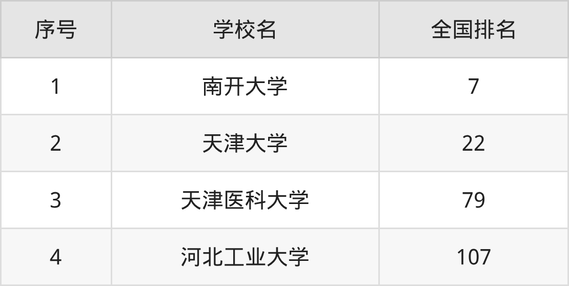 本文以校友会2026年大学全国排名为参考依据,列举天津市内211大学的全国排名情况,其中排名前4的是: