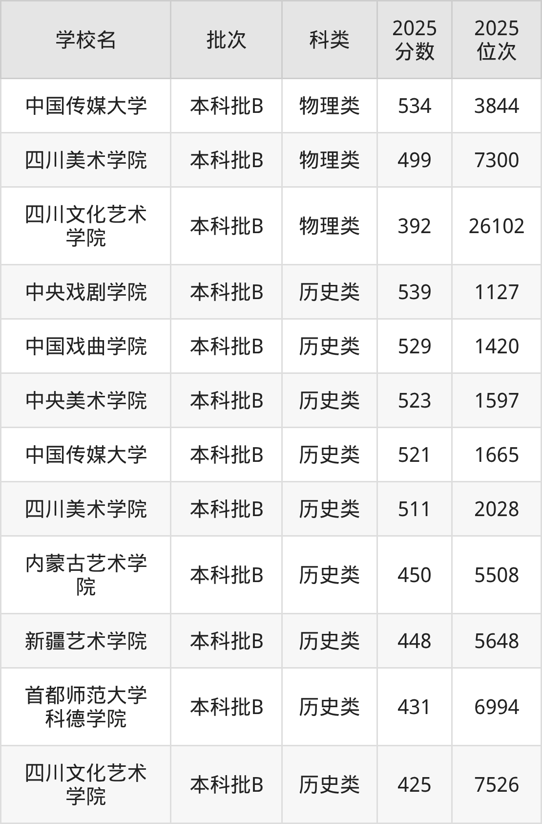 二、宁夏艺术类大学2025年录取分数线