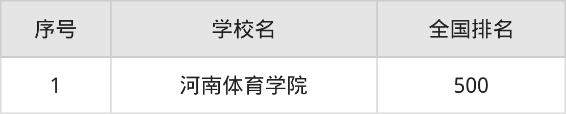 1、河南体育学院:2026年排全国第500名。