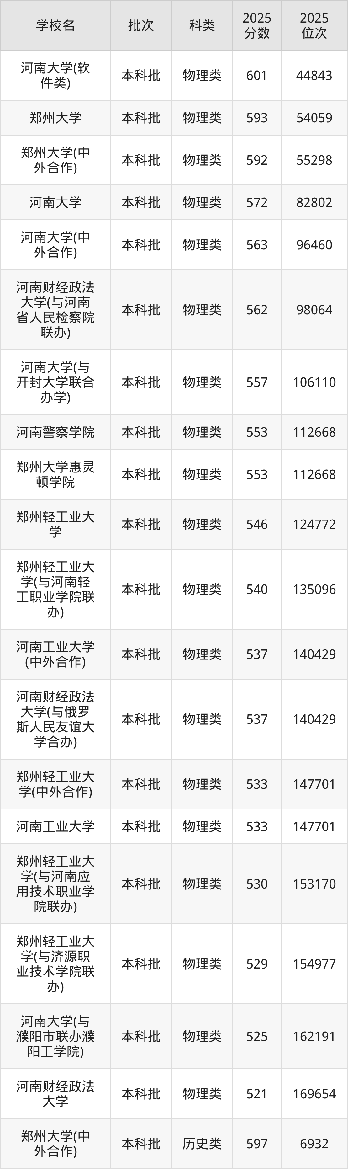 二、河南一本大学2025年录取分数线