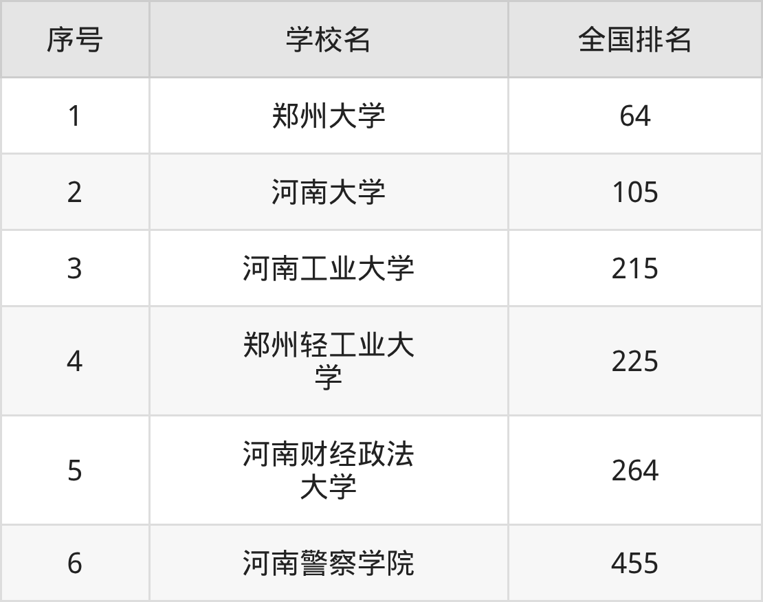 本文以校友会2026年大学全国排名为参考依据,列举河南省内一本大学的全国排名情况,其中排名前5的是: