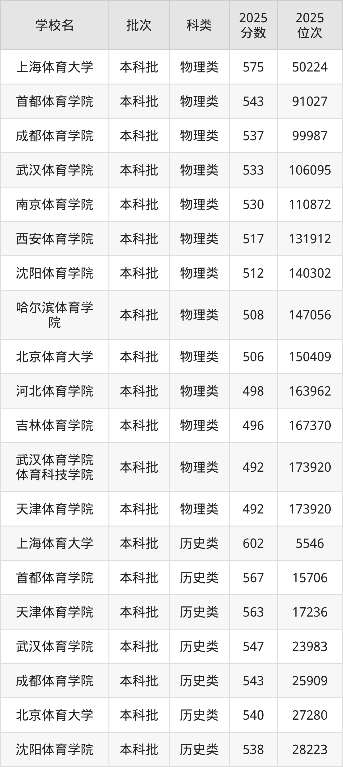本文将收集河北体育类大学名单及2025年招生分数线情况,并附上院校最新排名,以便2026届考生择校参考。
