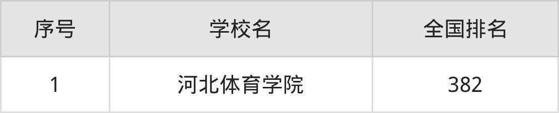 本文以校友会2026年大学全国排名为参考依据,列举河北省内体育类大学的全国排名情况: