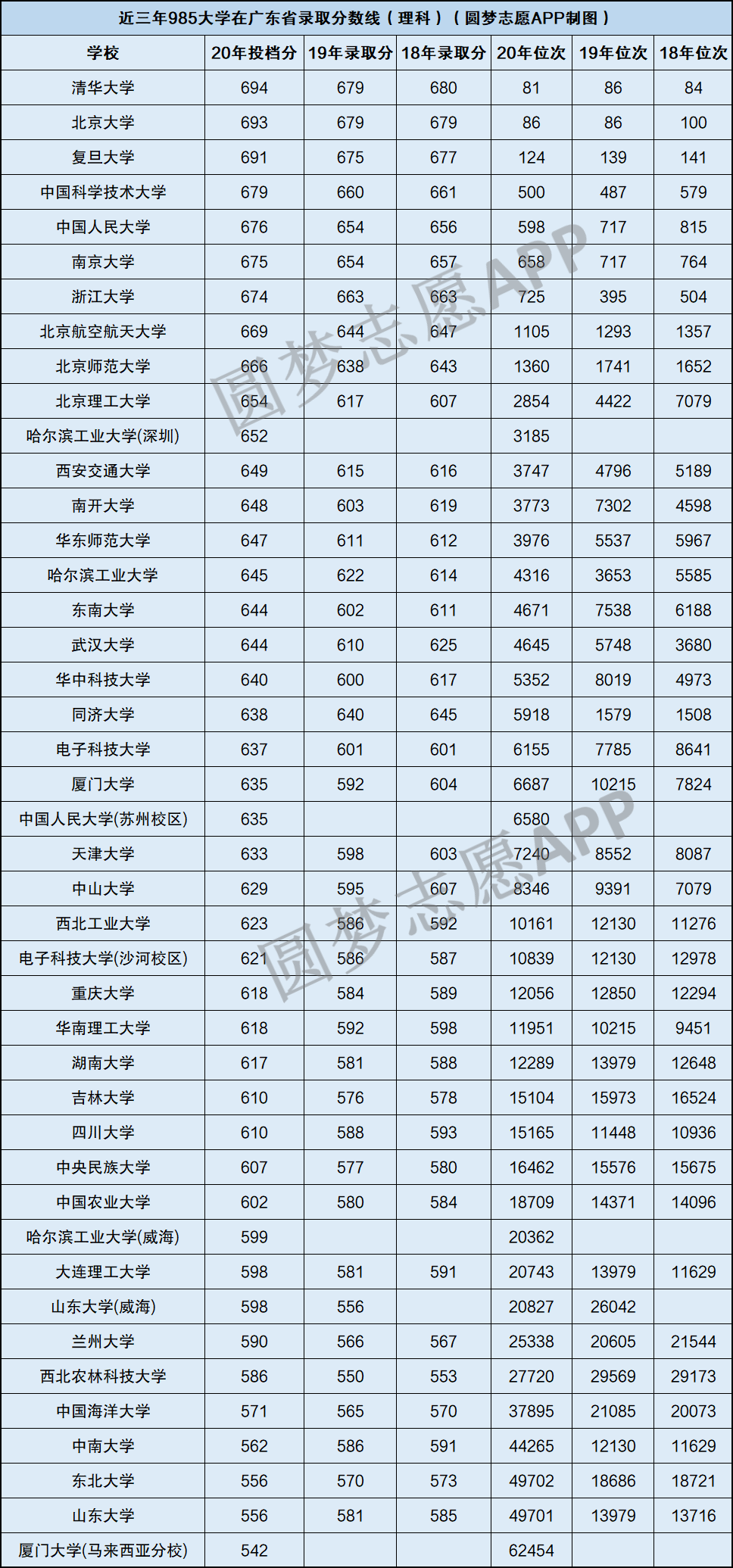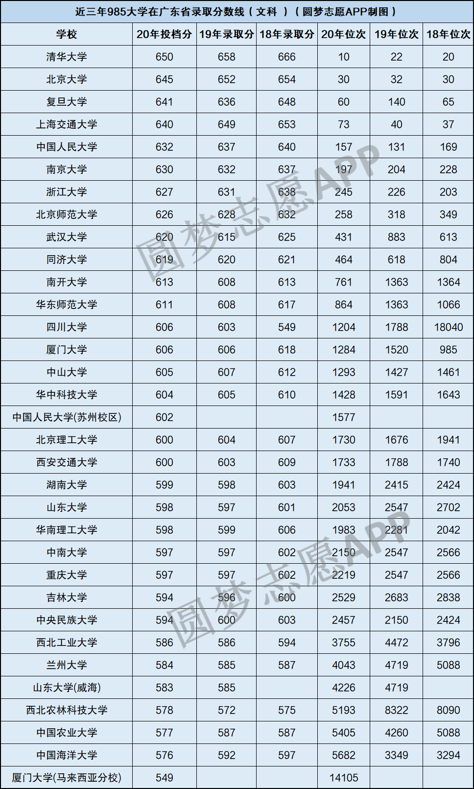 从以上录取位次可以看出,如果想要考取一所985大学,广东省文科生的最低位次至少应该排在5200名以内,而理科生则至少需要排在45000名之内。