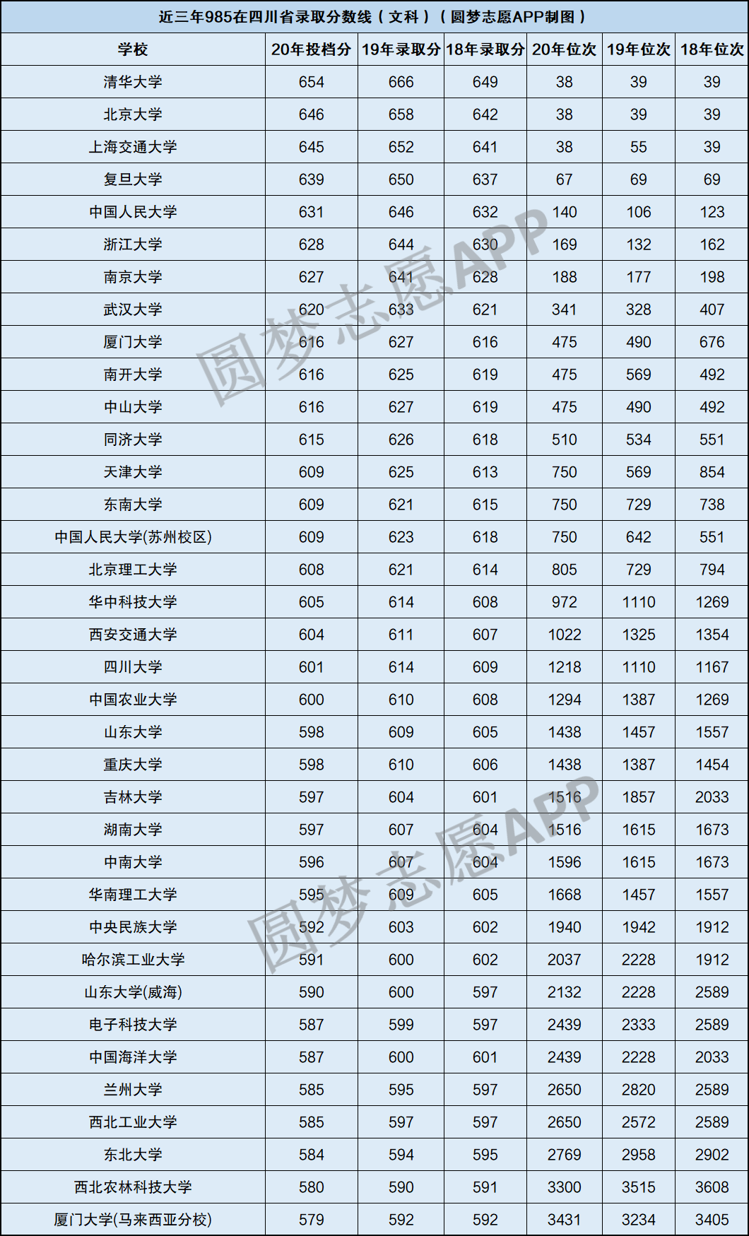 从以上录取分数和位次可以看出,如果想要考取一所985大学,四川文科生最低位次至少应该排在3000名以内,而理科生则至少需要排在16000名之内。