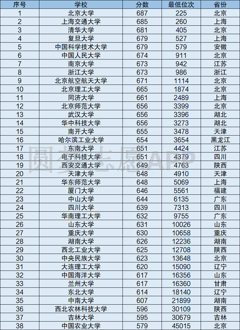 友情提醒:由于本文篇幅有限,想了解其它省份高考多少分能上985大学,可以下载圆梦志愿APP登录查询。