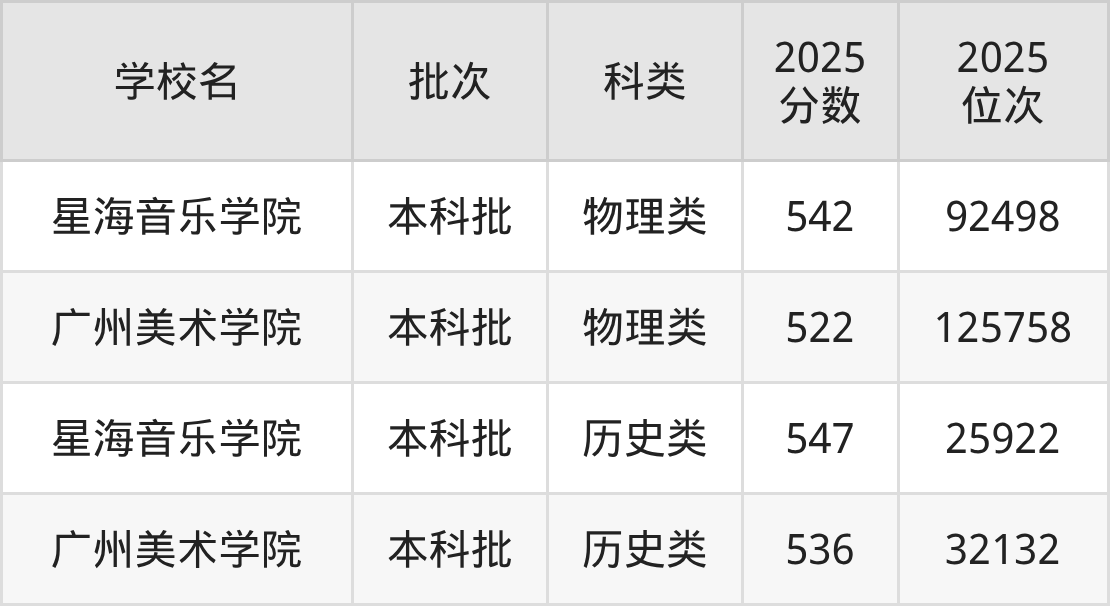 本文将收集广东艺术类大学名单及2025年招生分数线情况,并附上院校最新排名,以便2026届考生择校参考。