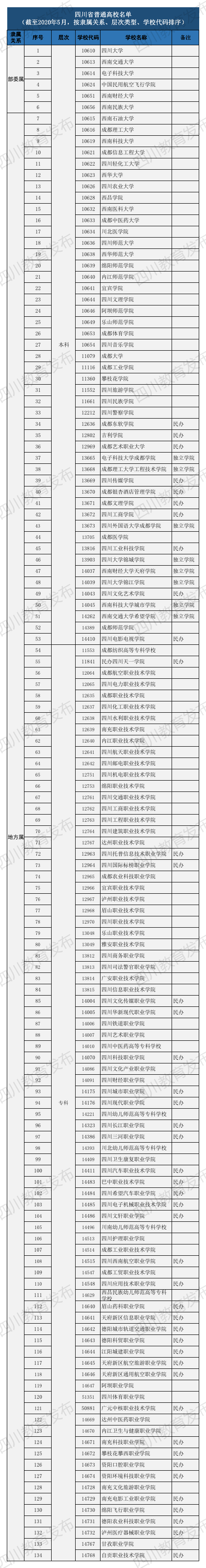 二、四川134所正规高校名单