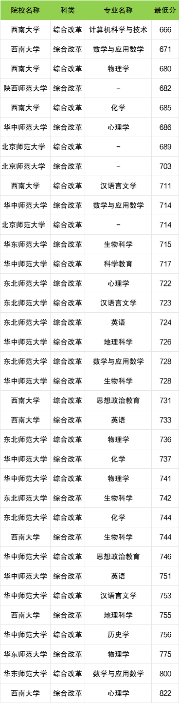 2024年天津国家公费师范生招生分数范围在666分~822分之间,其中收分最低的院校为西南大学计算机科学与技术专业。