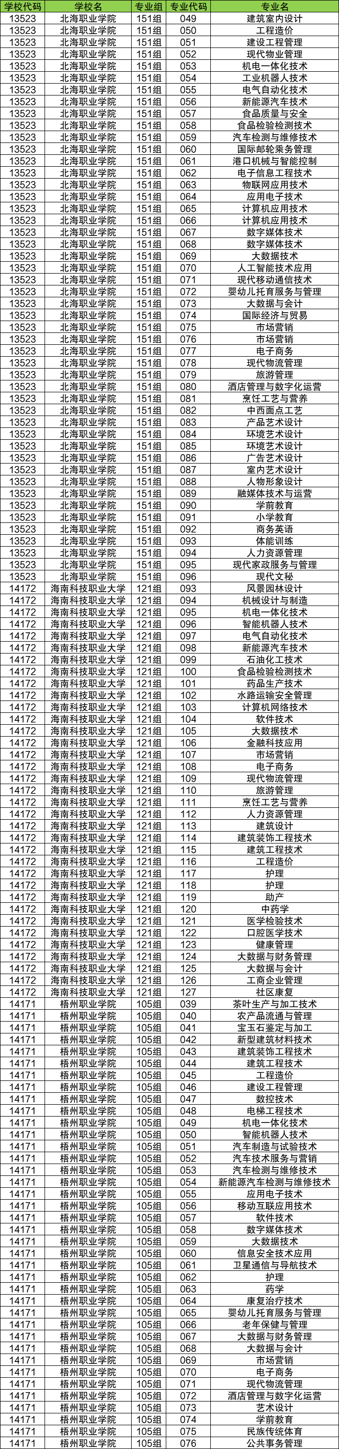 参考最新一年广西高考志愿填报招生计划表,这里将列举部分专科院校的物理类院校代码、专业组代码、专业代码,以供同学们参考(2025年请以正式发布的招生计划表代码为准):
