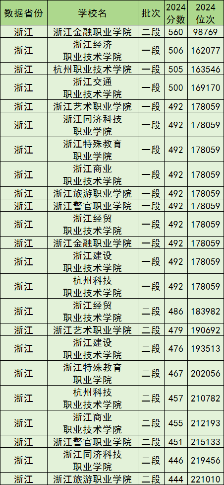 按照杭州市所有公办大专院校2024年在浙江省内录取分数线高低排名,为大家整理以下内容。