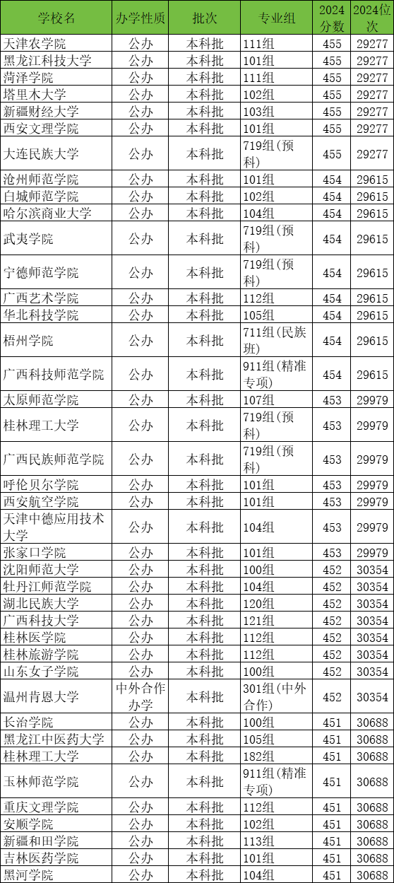 广西历史类成绩排名3万能上的院校专业组具体位次为:29277名-30688名,共有40个,对应分数为455分-451分。