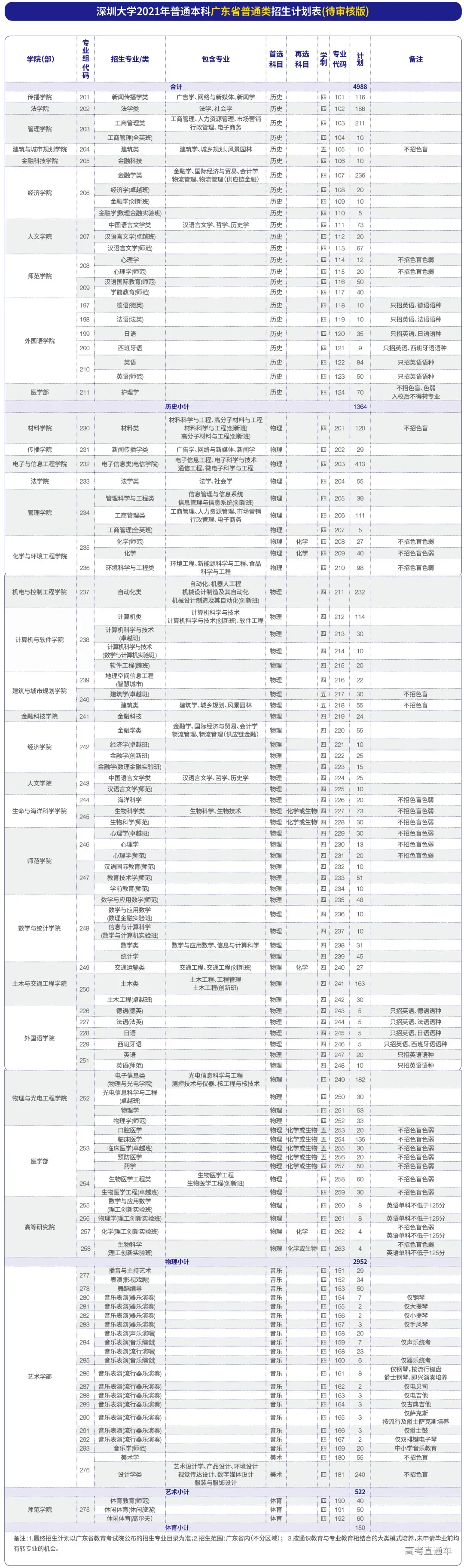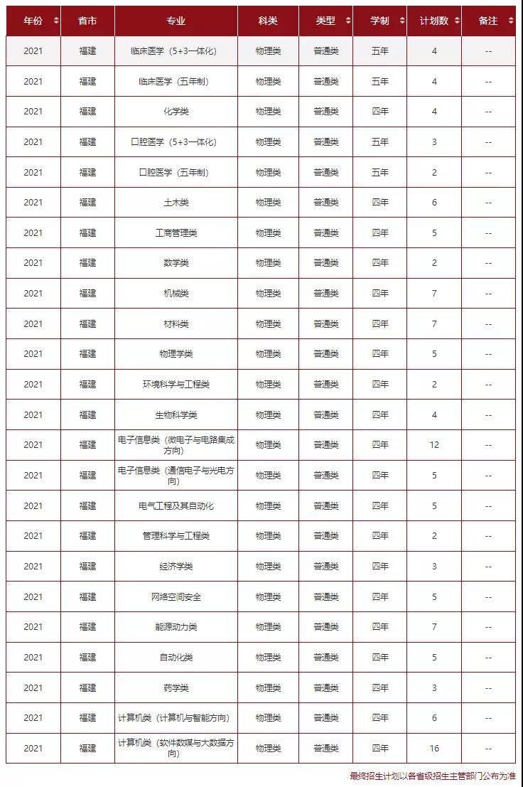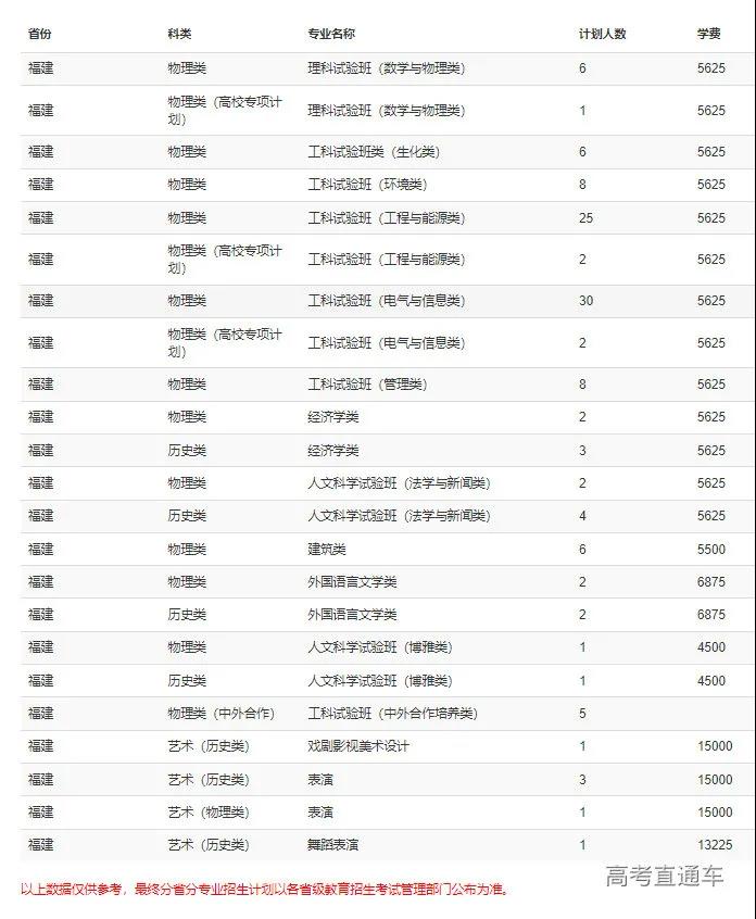 1.各专业的考试科目(选考科目)及招生计划以考生所在地省级教育行政主管部门或招生考试机构公布为准,备注以上表中专业备注为准。