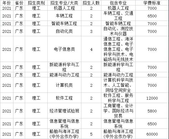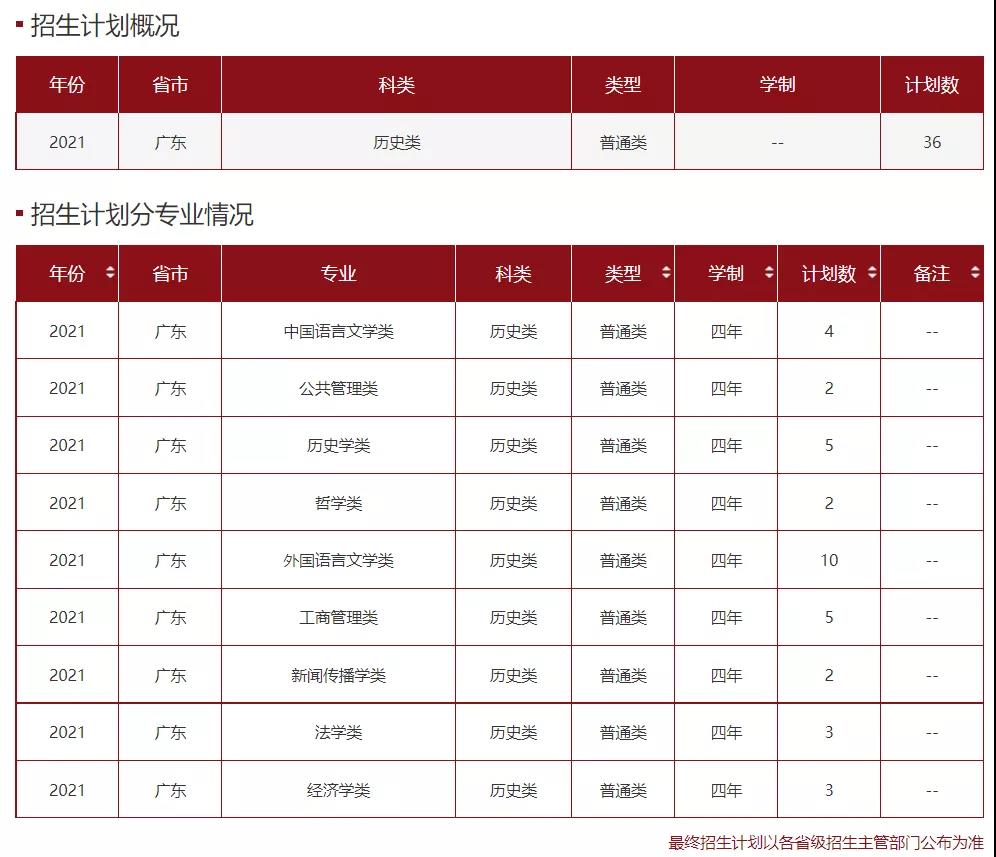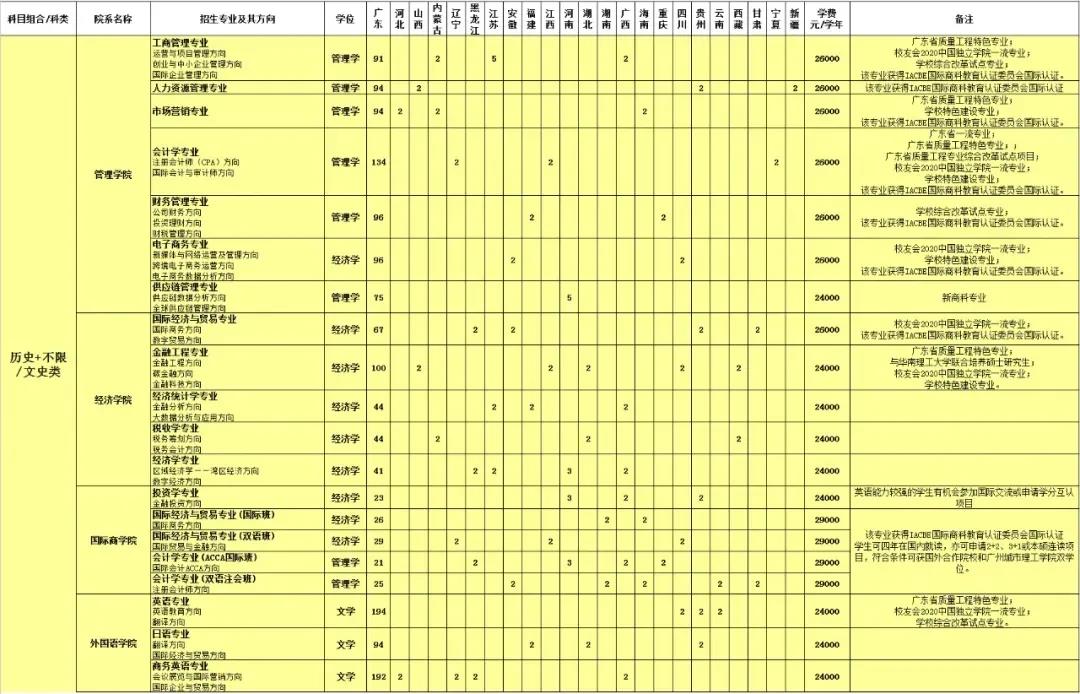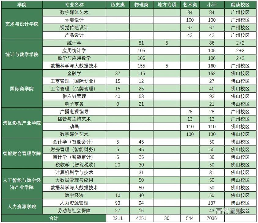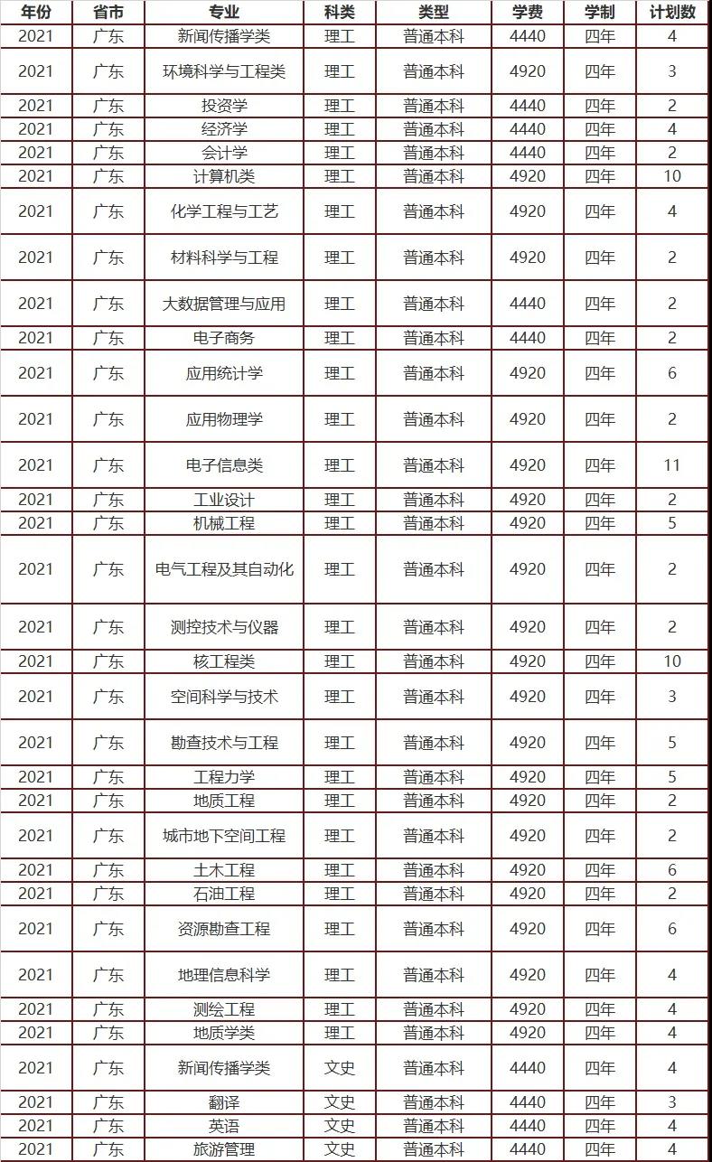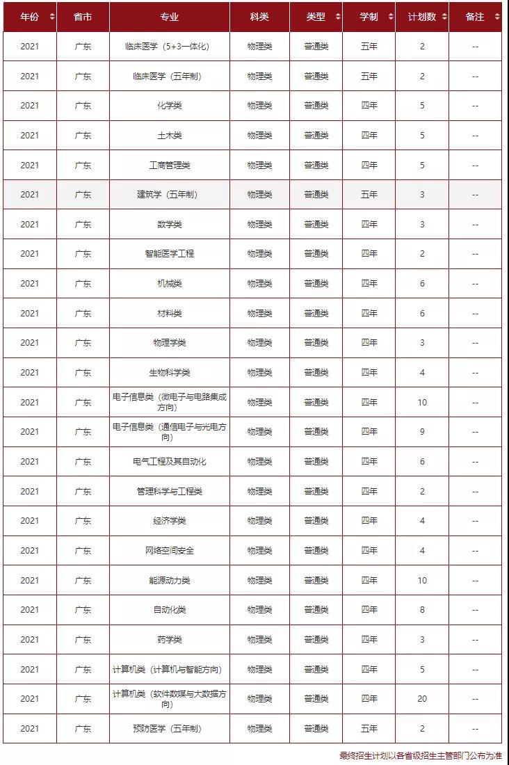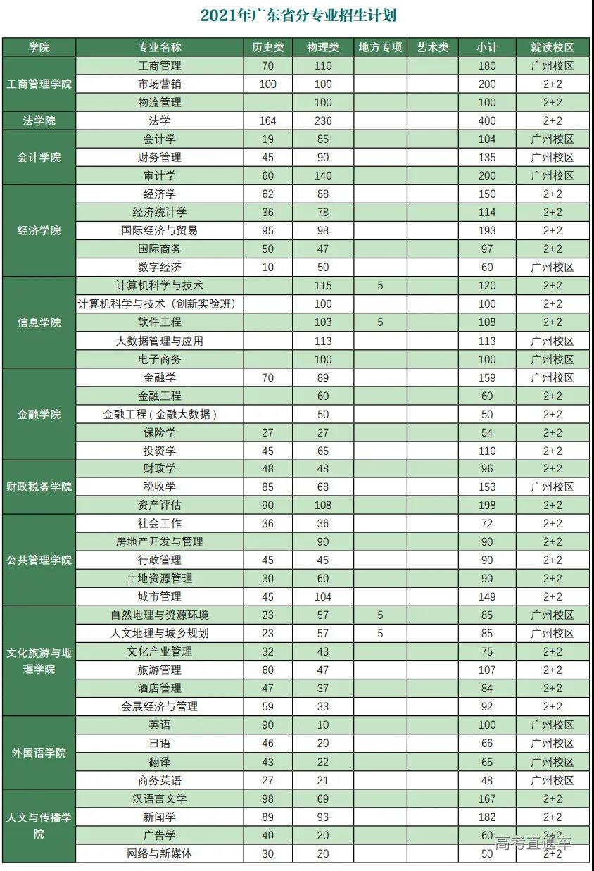 2021年招生计划(广东省)本科: