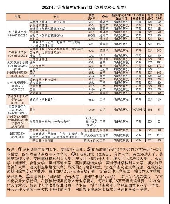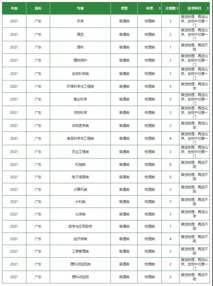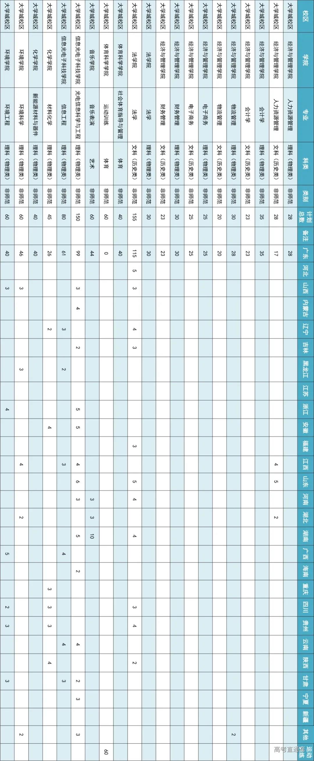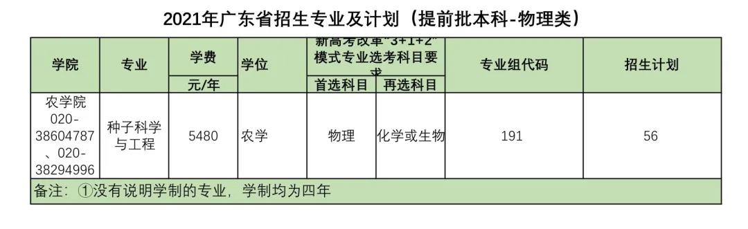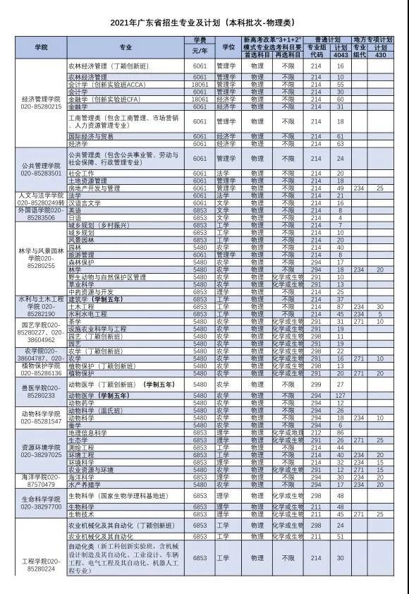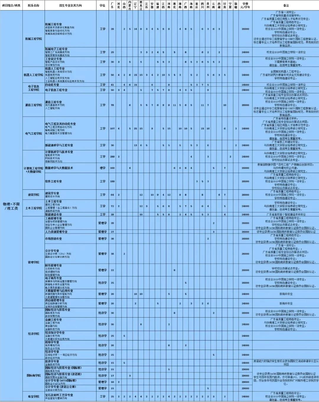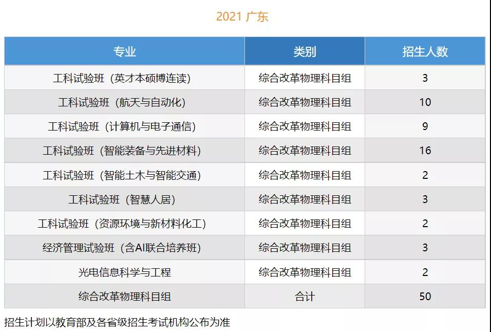 2021年招生计划(广东省)本科: