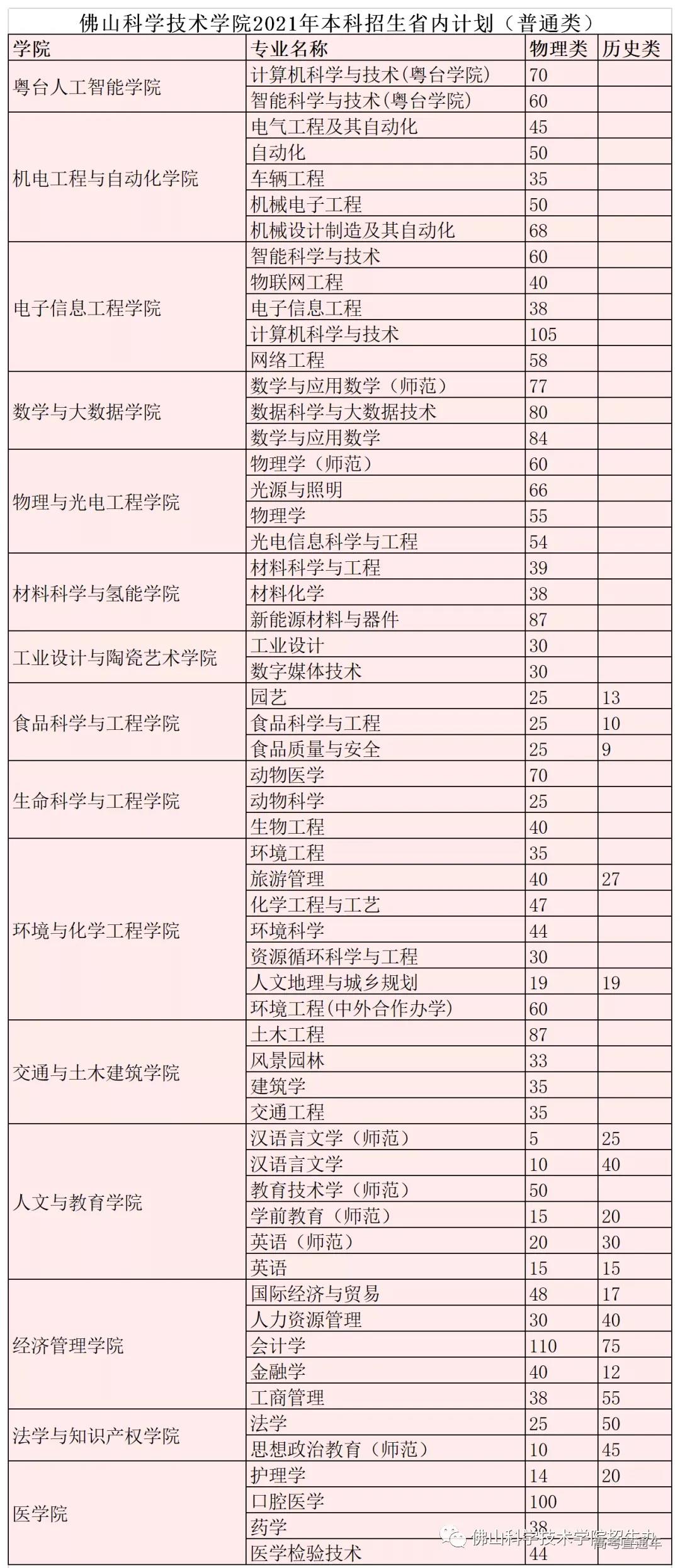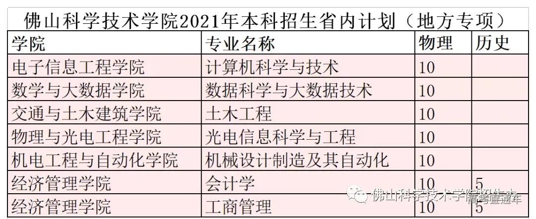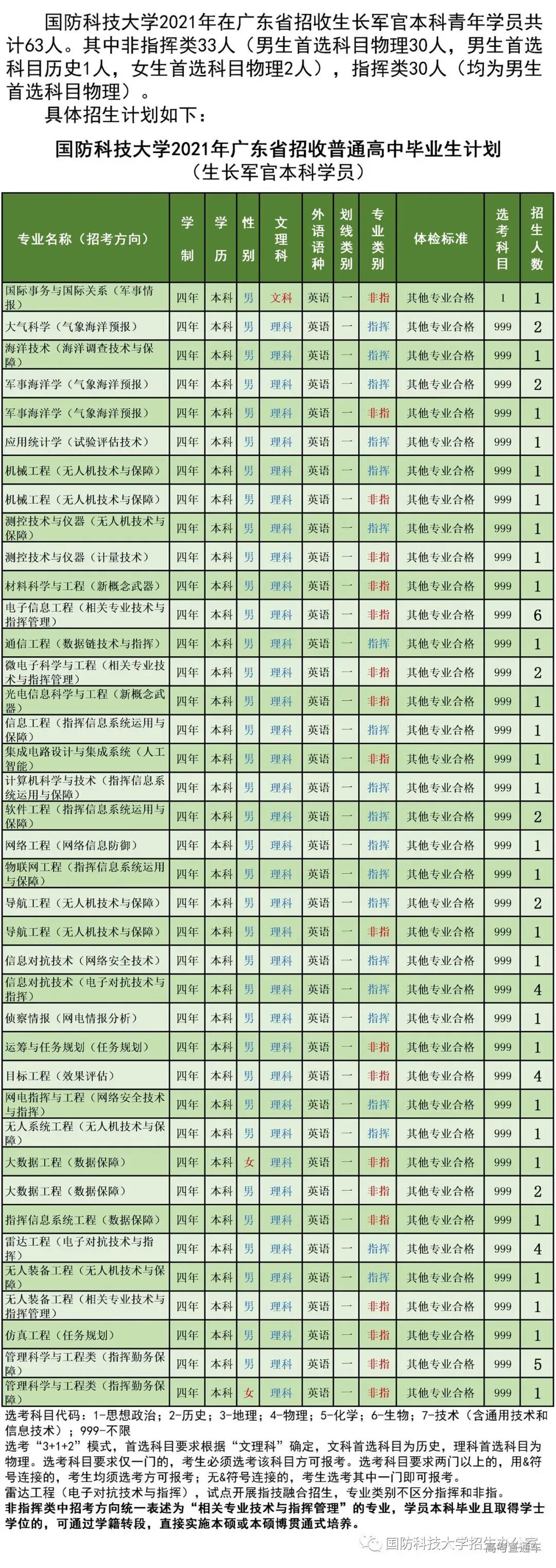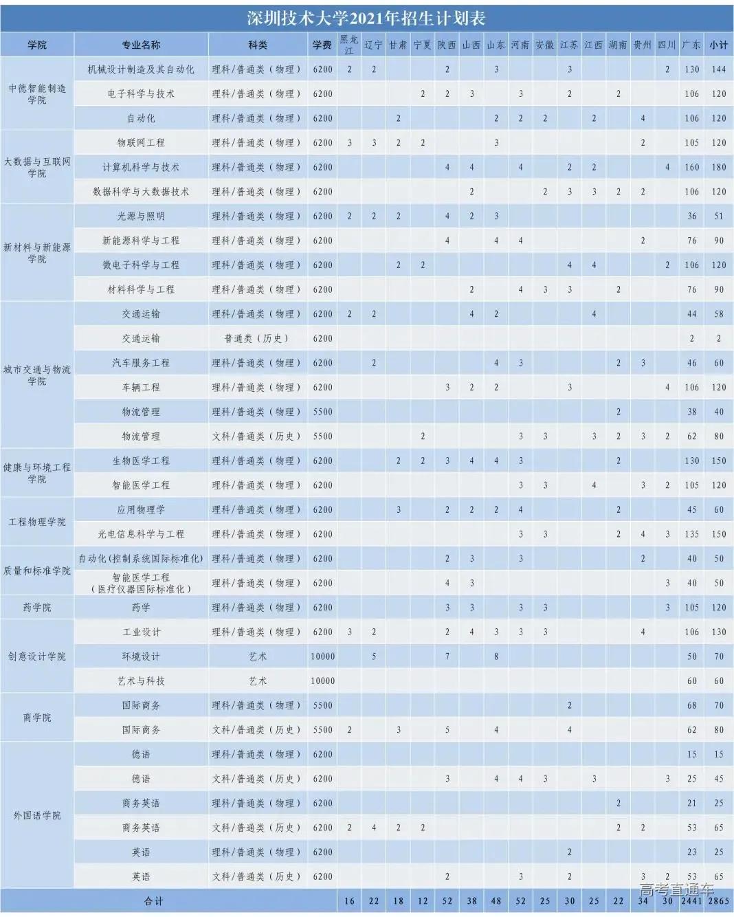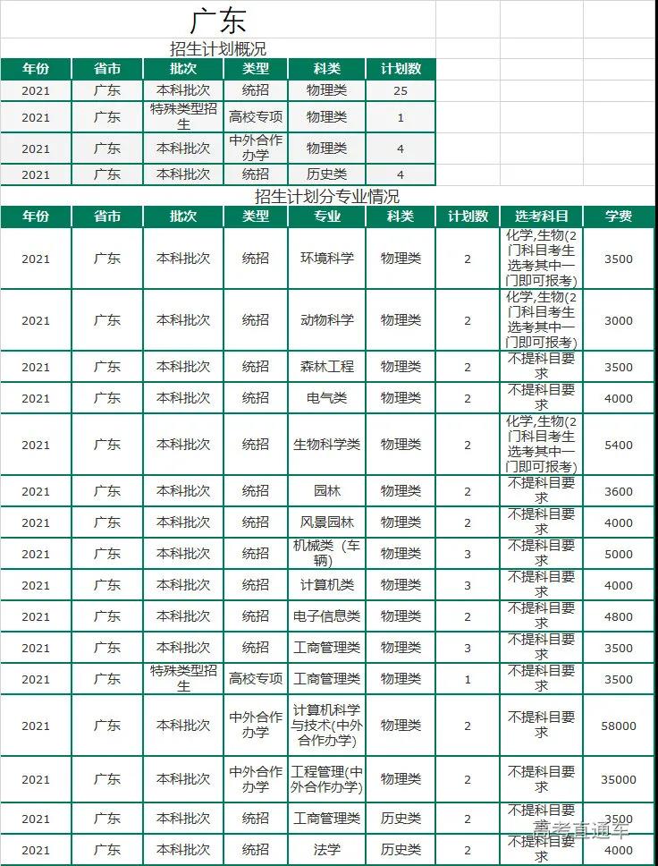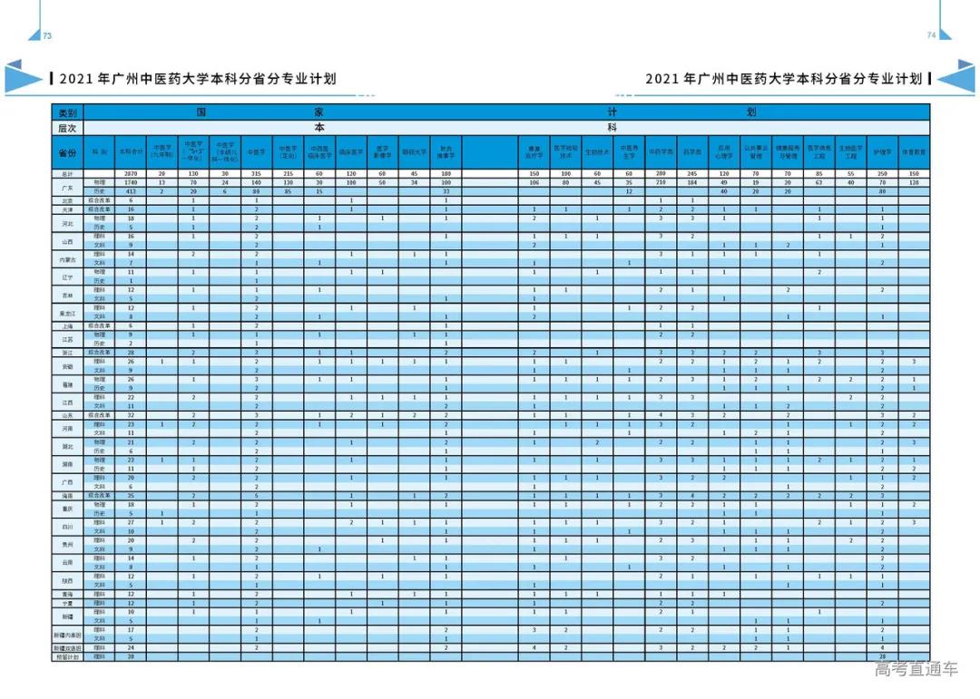 2021年招生计划(广东省)本科: