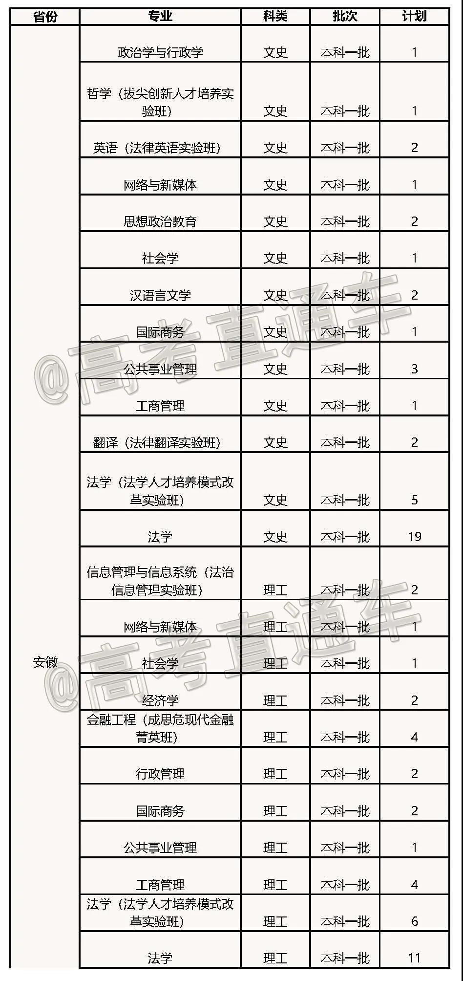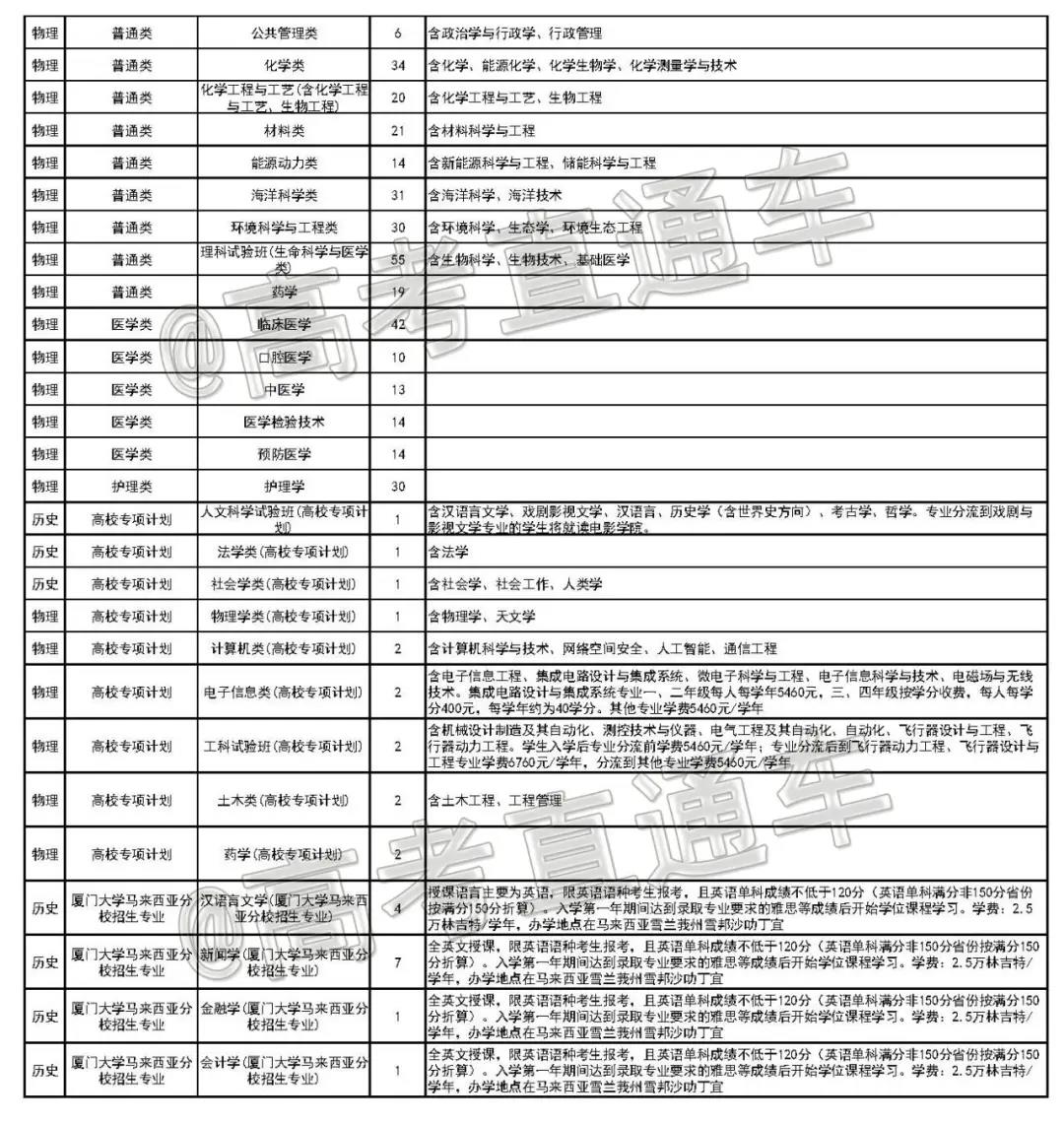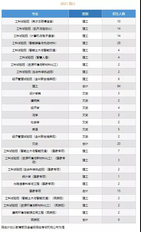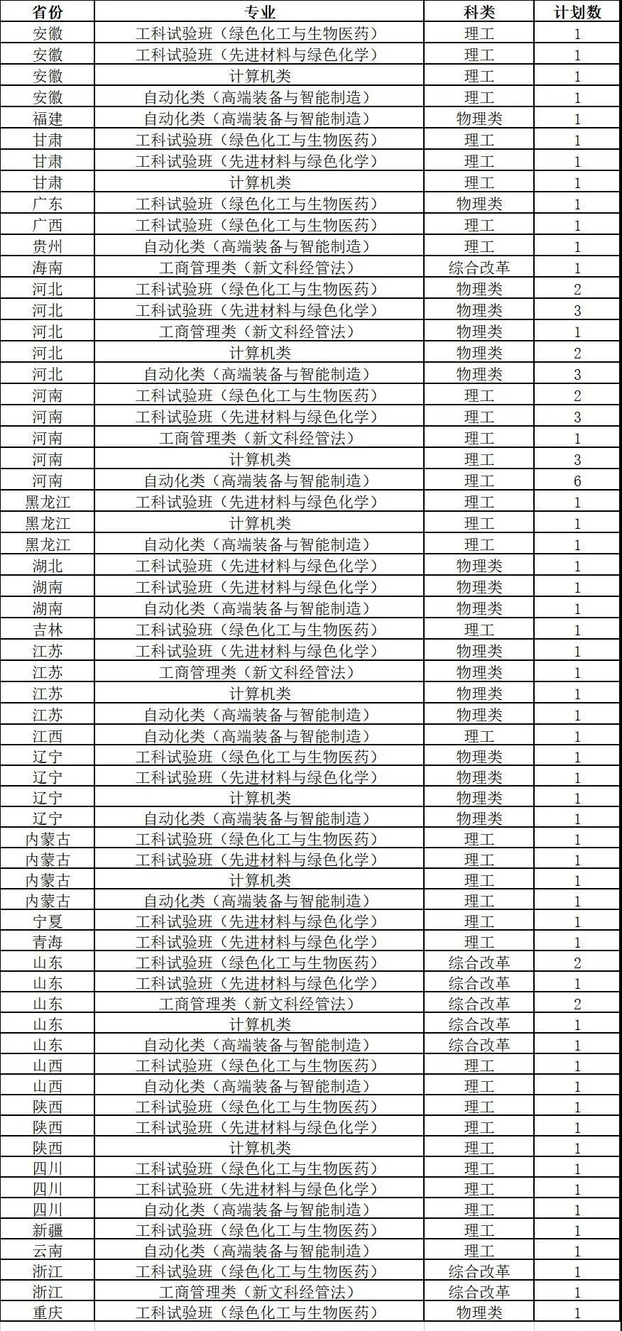 注:新疆“国家专项计划”含5个南疆计划,专业为地质类 ;高考综合改革省份不分文理;此表仅供参考,以教育部最终公布的计划数为准。