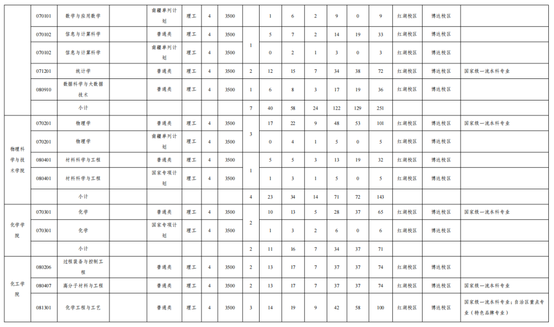 备注:预留计划20人,高水平运动队15人;专项计划只针对安徽省考生;计算机类(磬苑校区)含计算机科学与技术、软件工程专业,在磬苑校区培养;计算机类(龙河校区)含智能科学与技术、数据科学与大数据技术、网络空间安全、物联网工程、网络工程专业,在龙河校区培养;招生计划最终以考试院公布为准。