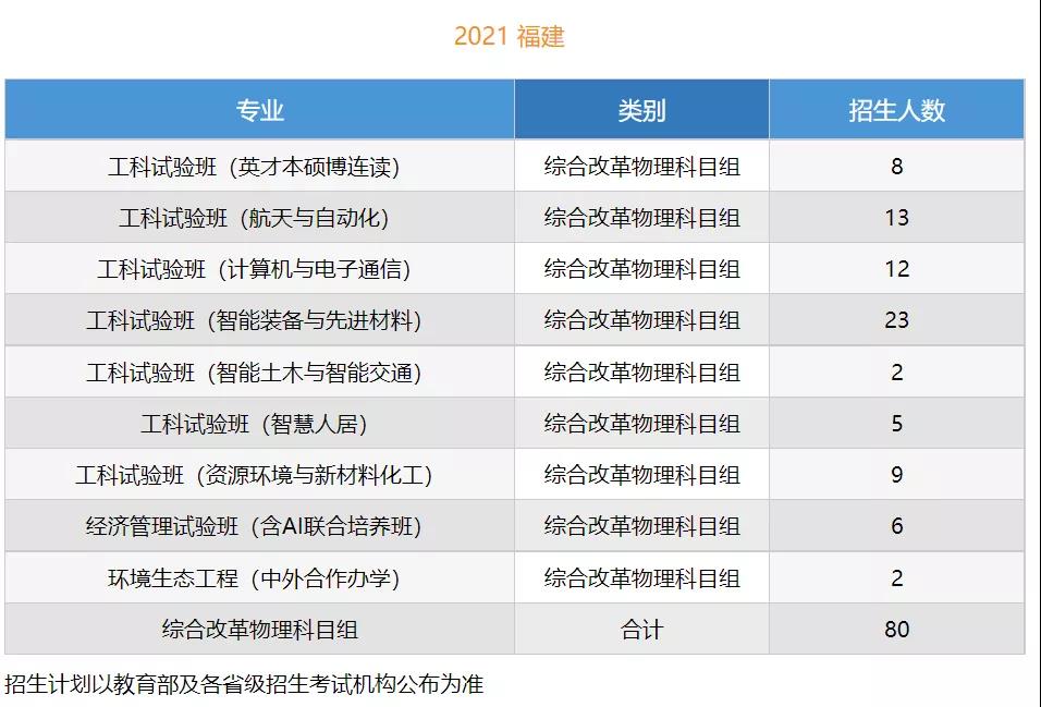本科招生计划(“3+1+2”高考综合改革省份):