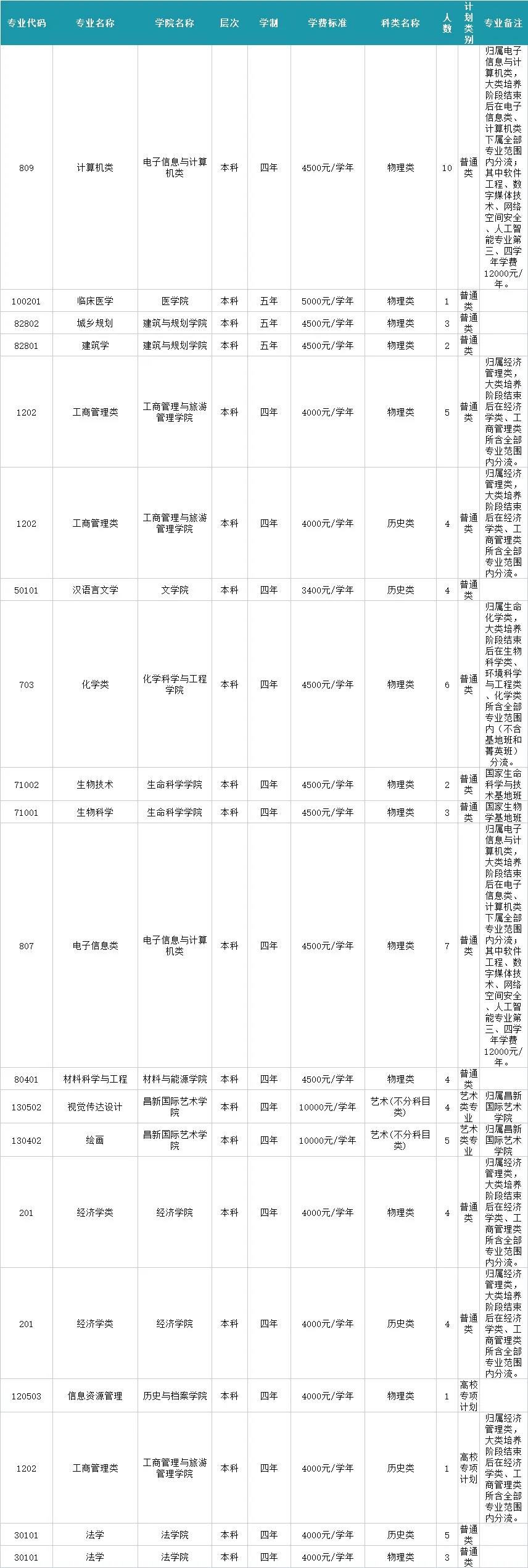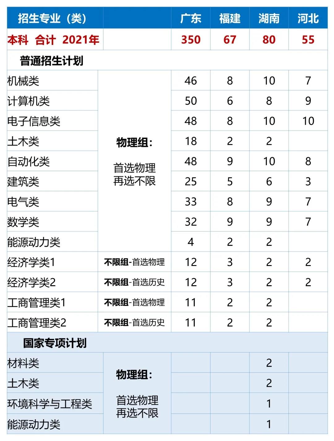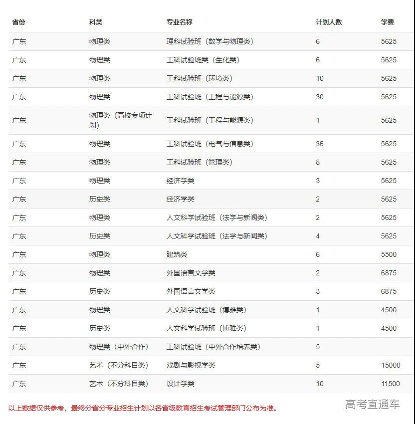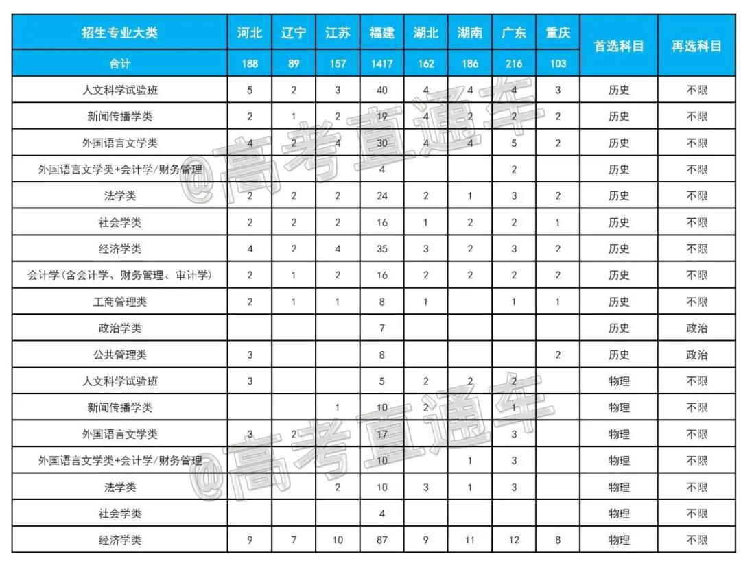 2.广东、湖南、辽宁、江苏、山东为新高考改革省份,选考科目要求参见下方的分省分专业计划表;