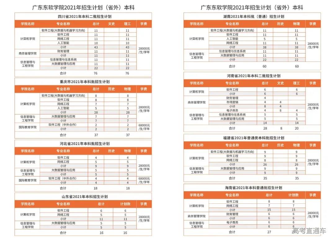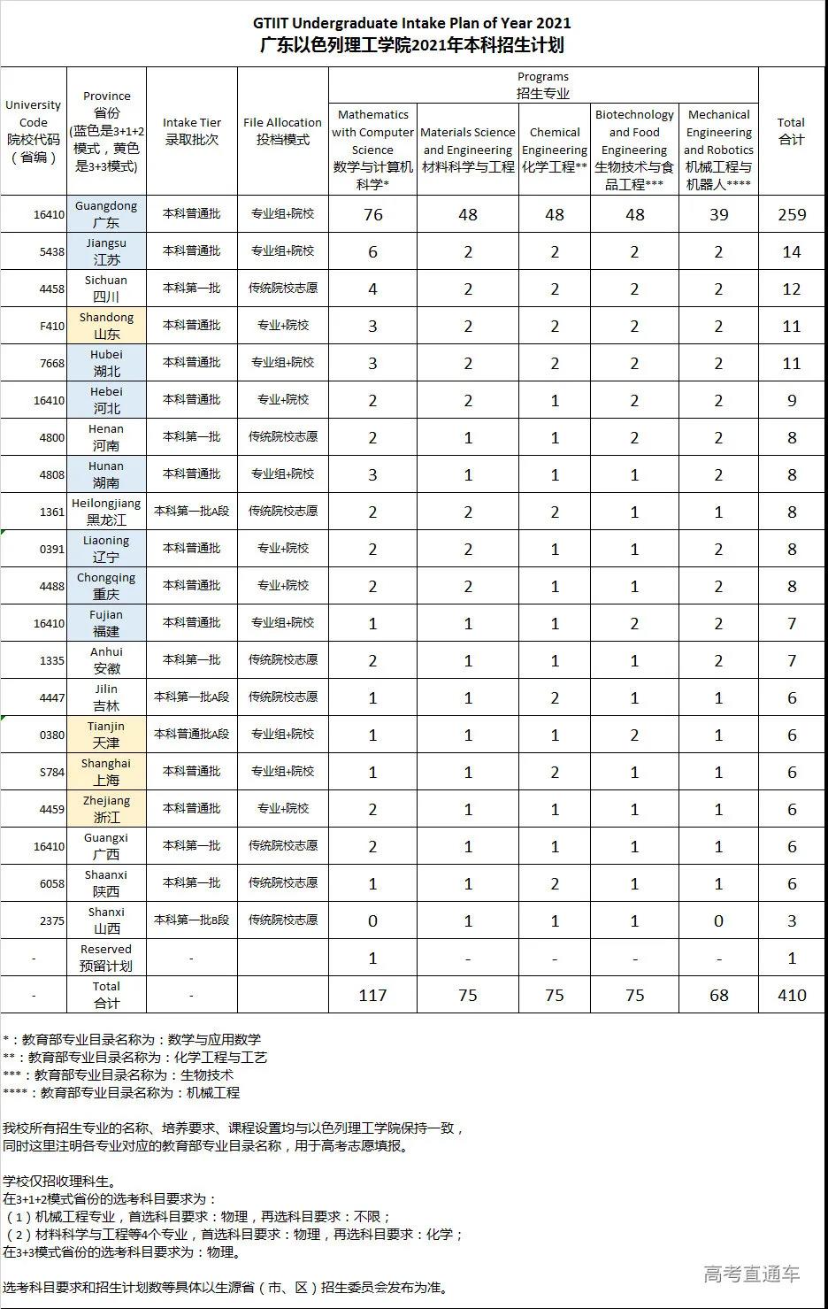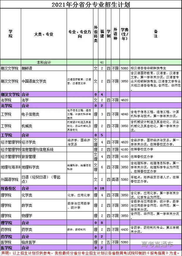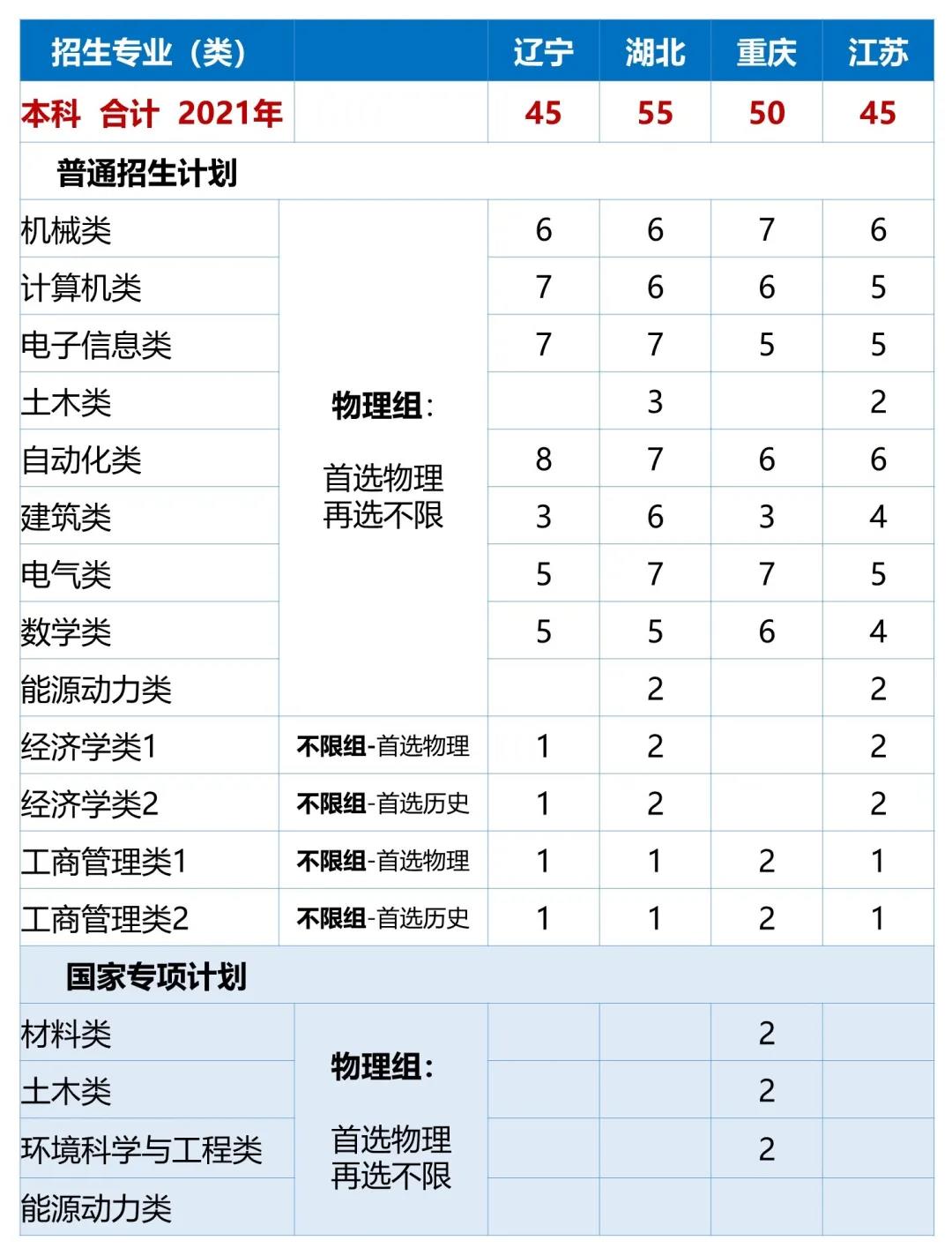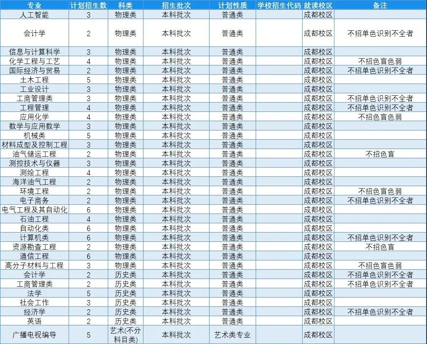 2.广东、湖南、辽宁、江苏、山东为新高考改革省份,选考科目要求参见下方的分省分专业计划表;