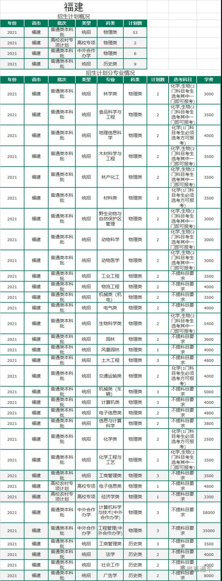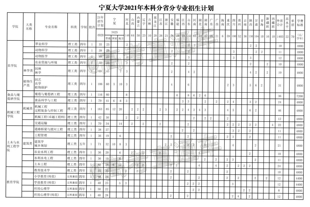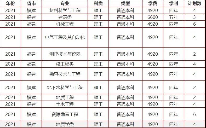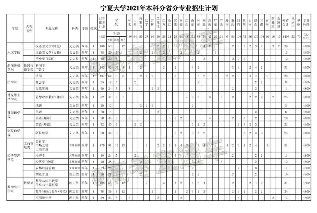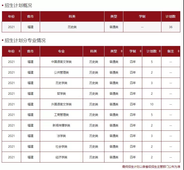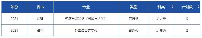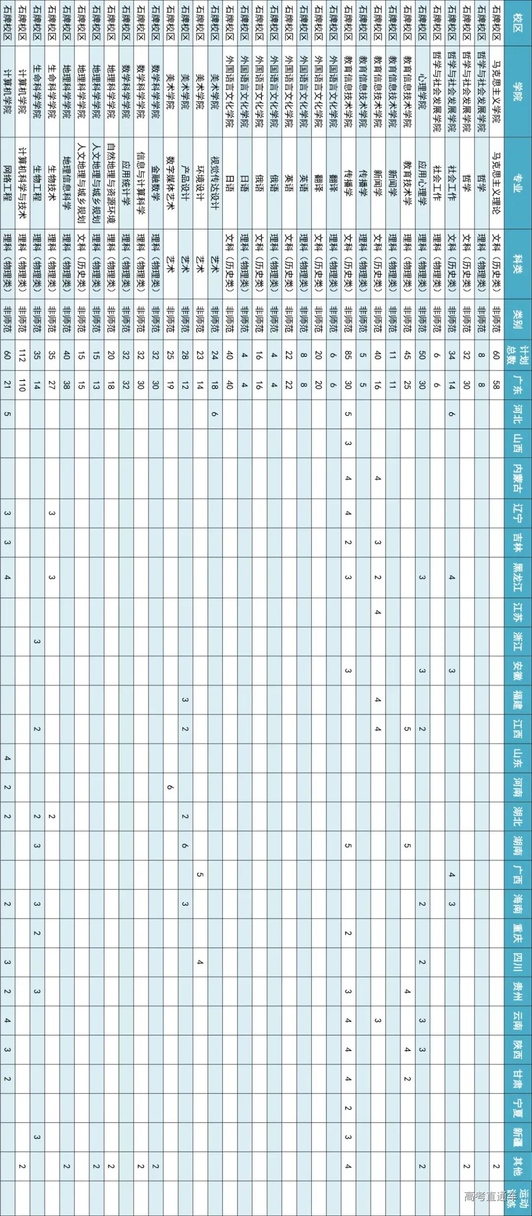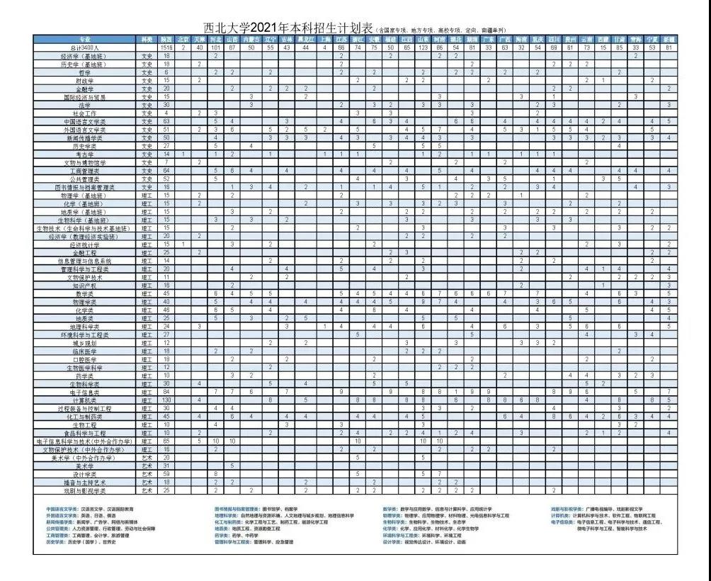 2021年非师范专业招生计划表: