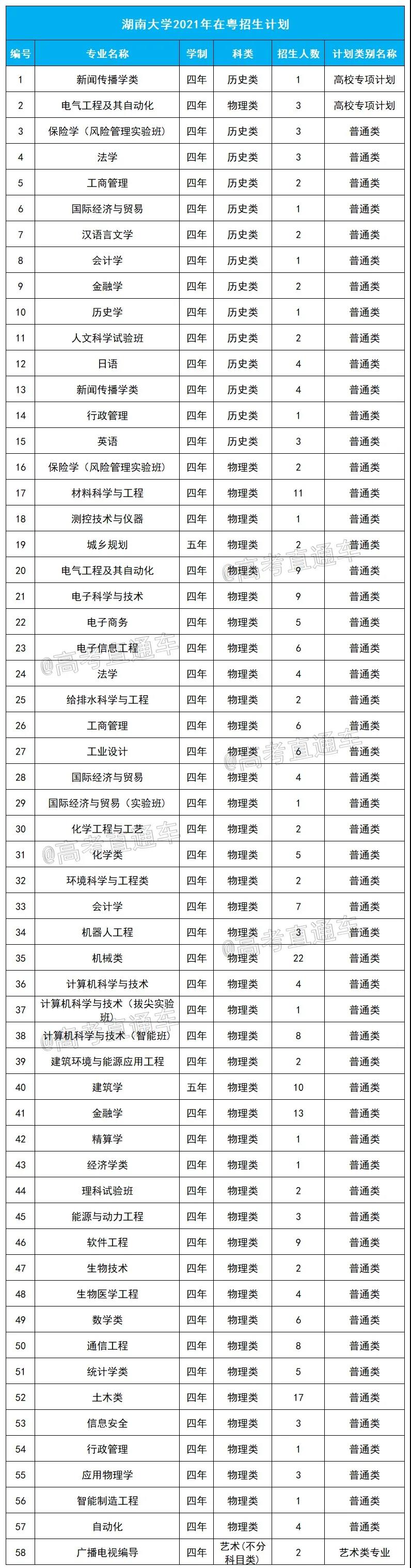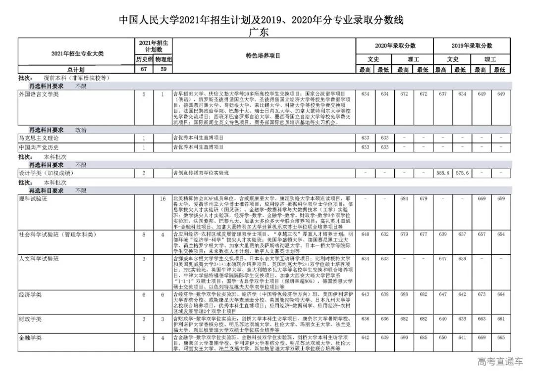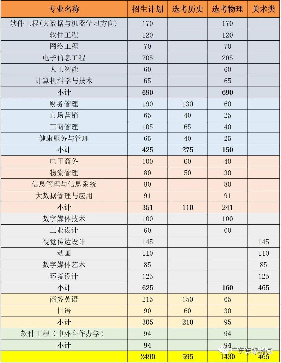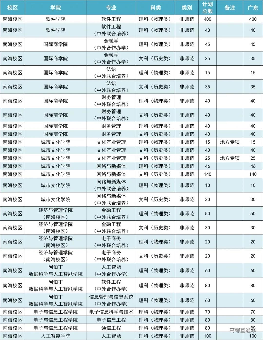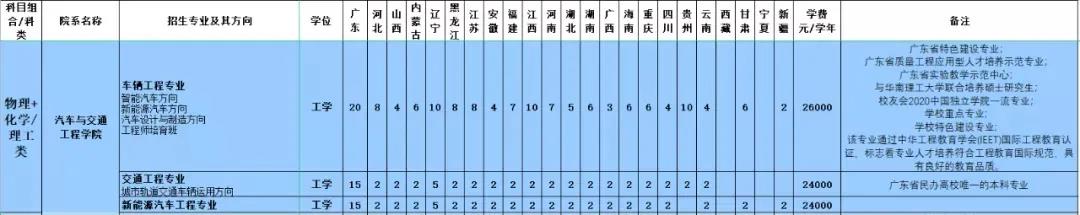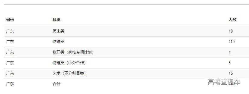 广东省普通类计划: