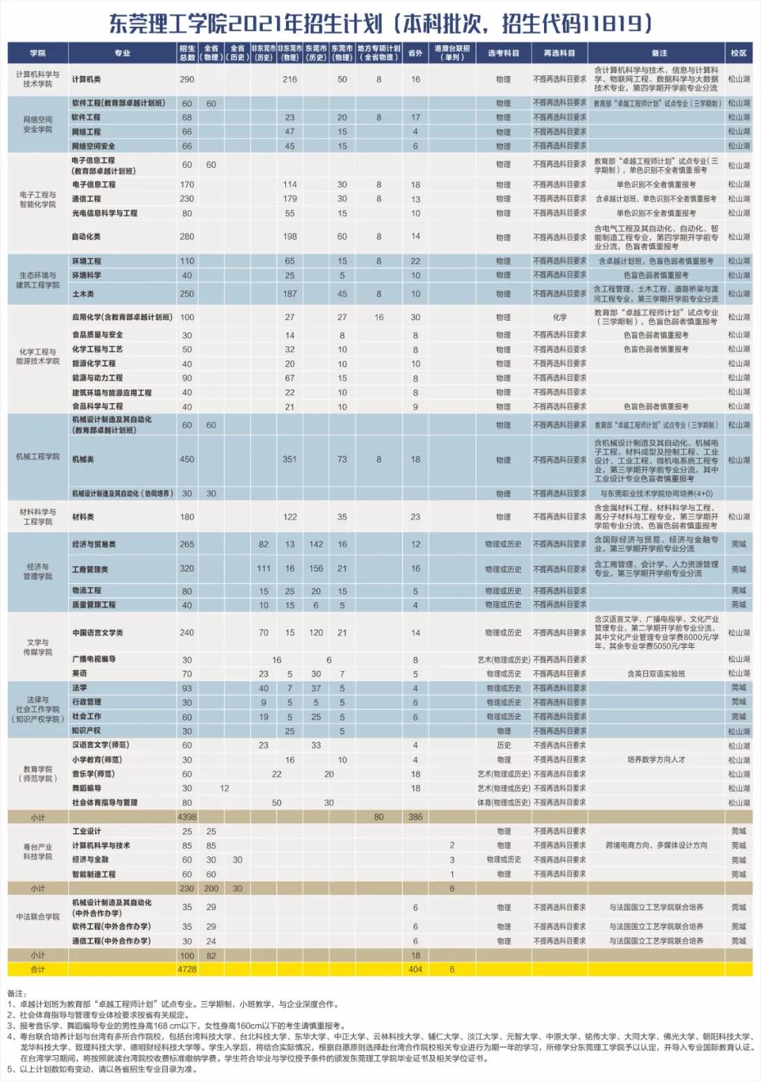 2021年东莞理工学院普通高考计划招生4728人,其中广东省内计划招生4324人,省外计划招生404人。