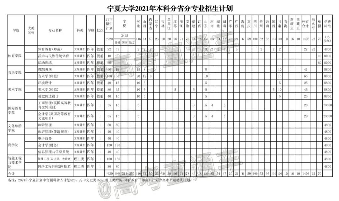 2021年招生计划(省外)本科:
