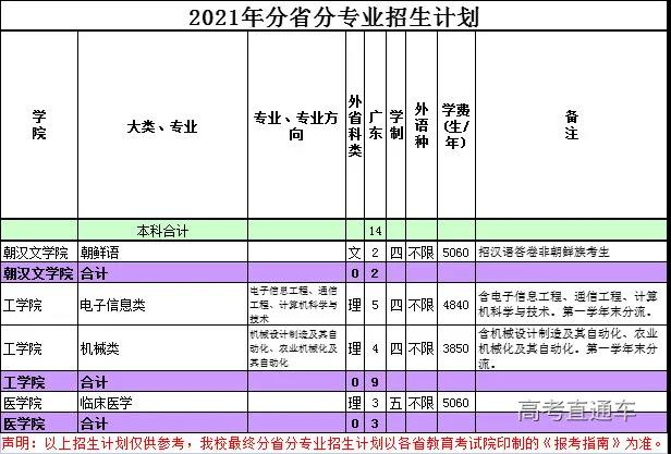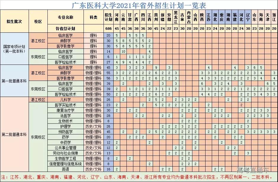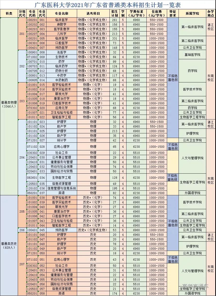 2021年广东医科大学广东省普通类本科招生计:
