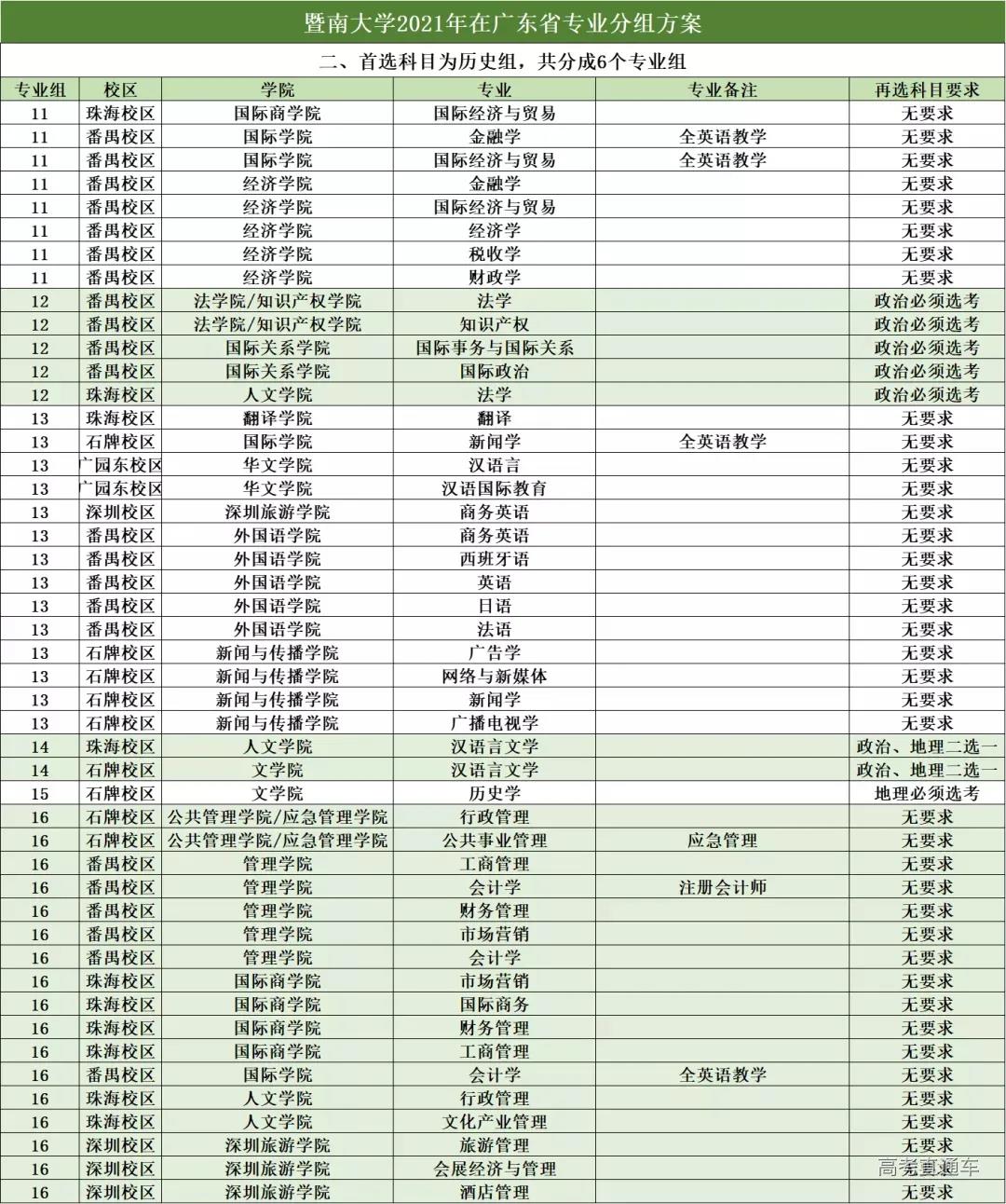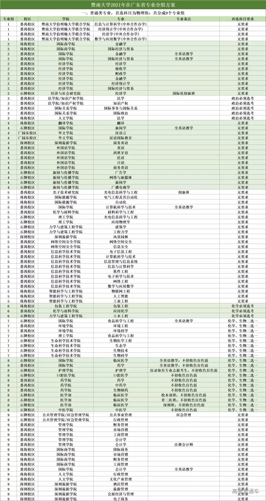 广东省本科批招生计划(含分组、选考科目):