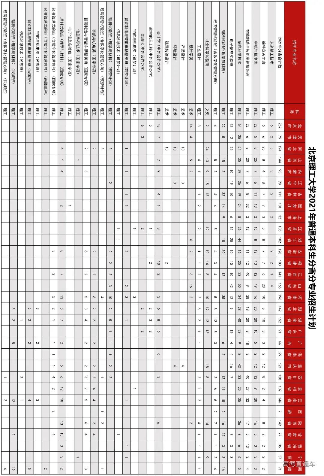 2021年本科招生专业(类)一览表: