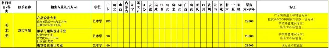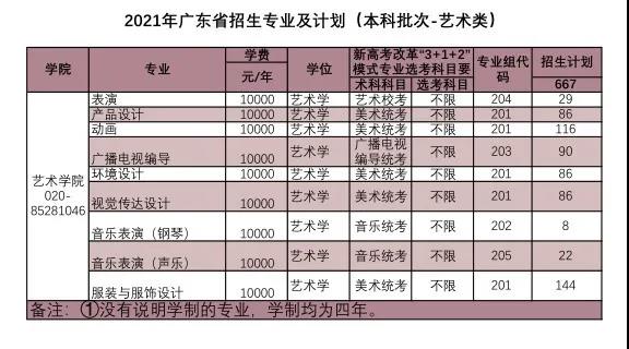 广东省美术类计划: