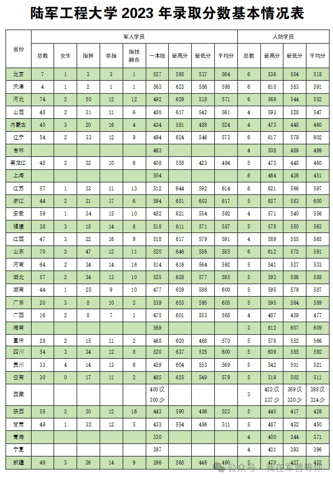 篇幅有限,以下是陆军工程大学2023年在各省提前批招生录取最低分情况,供参考: