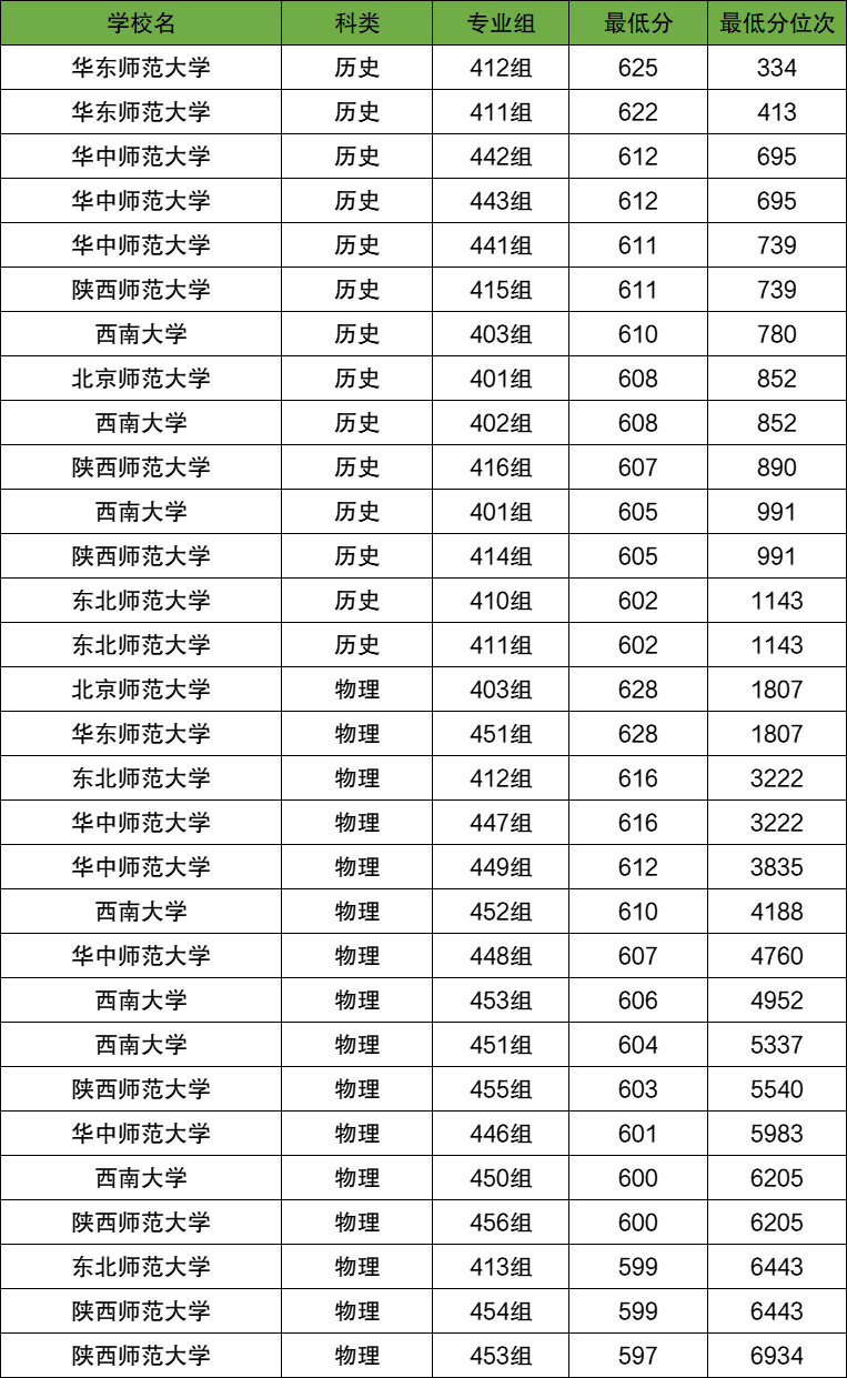 2025广西公费师范生最低录取分数线是:东北师范大学历史类602分,陕西师范大学物理类597分,华东师范大学物理类628分,广西科技师范学院历史类524分、物理类499分等。