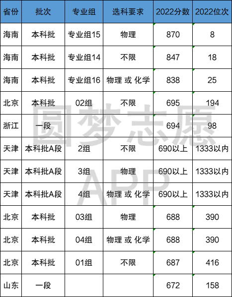 在采取“3+3”模式的6个省份中,录取分数线最高的是海南(870分,8名),录取分数线最低的是山东(672分,158名)。