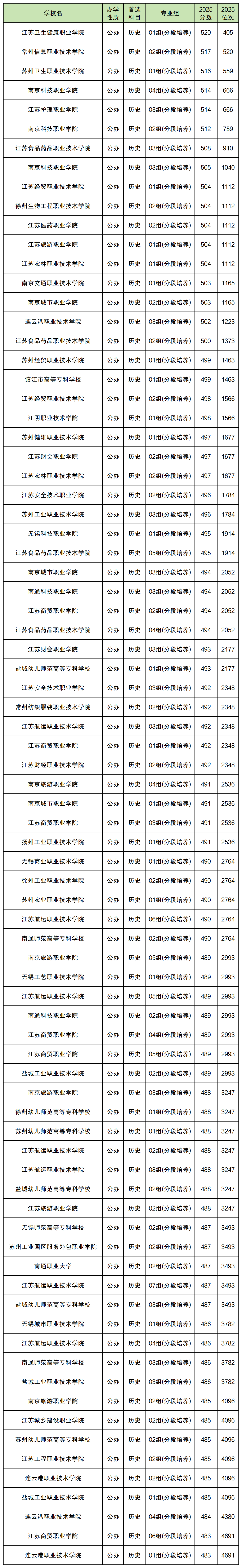 江苏商贸职业学院(06组),2025年最低分数线483分。