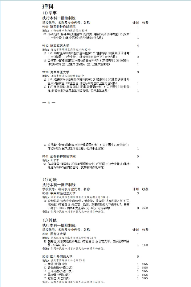 进行征集的院校有陆军军医大学、海军军医大学、中南财经政法大学、四川外国语大学。