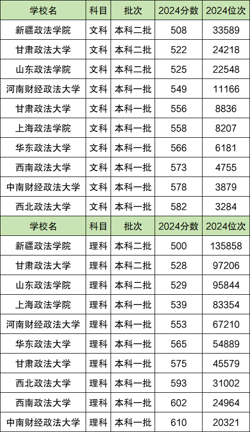 二、政法大学2024录取分数线多少