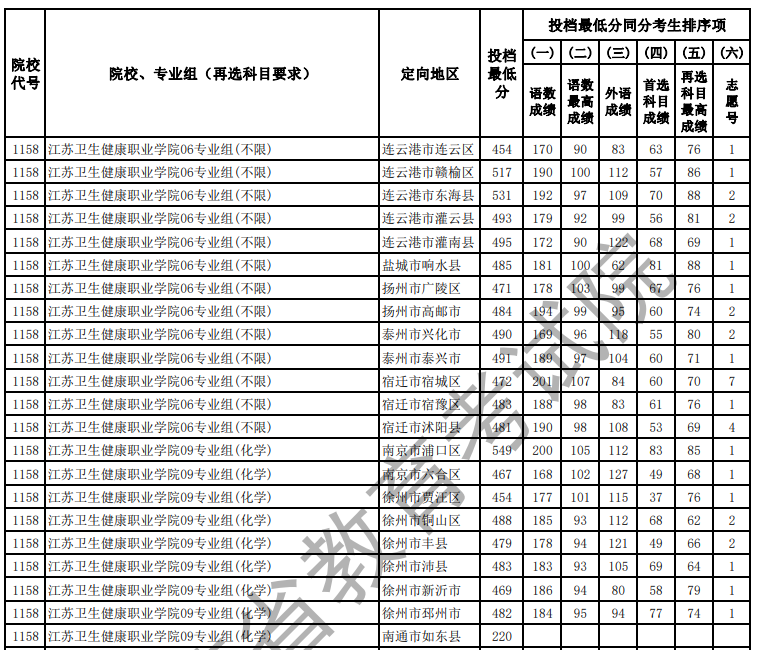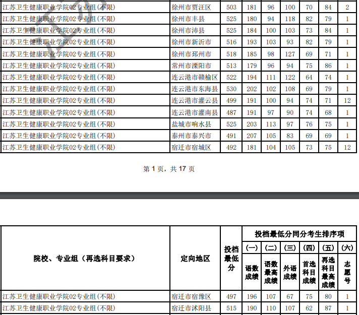 1、江苏卫生健康职业学院:历史类487分、物理类220分