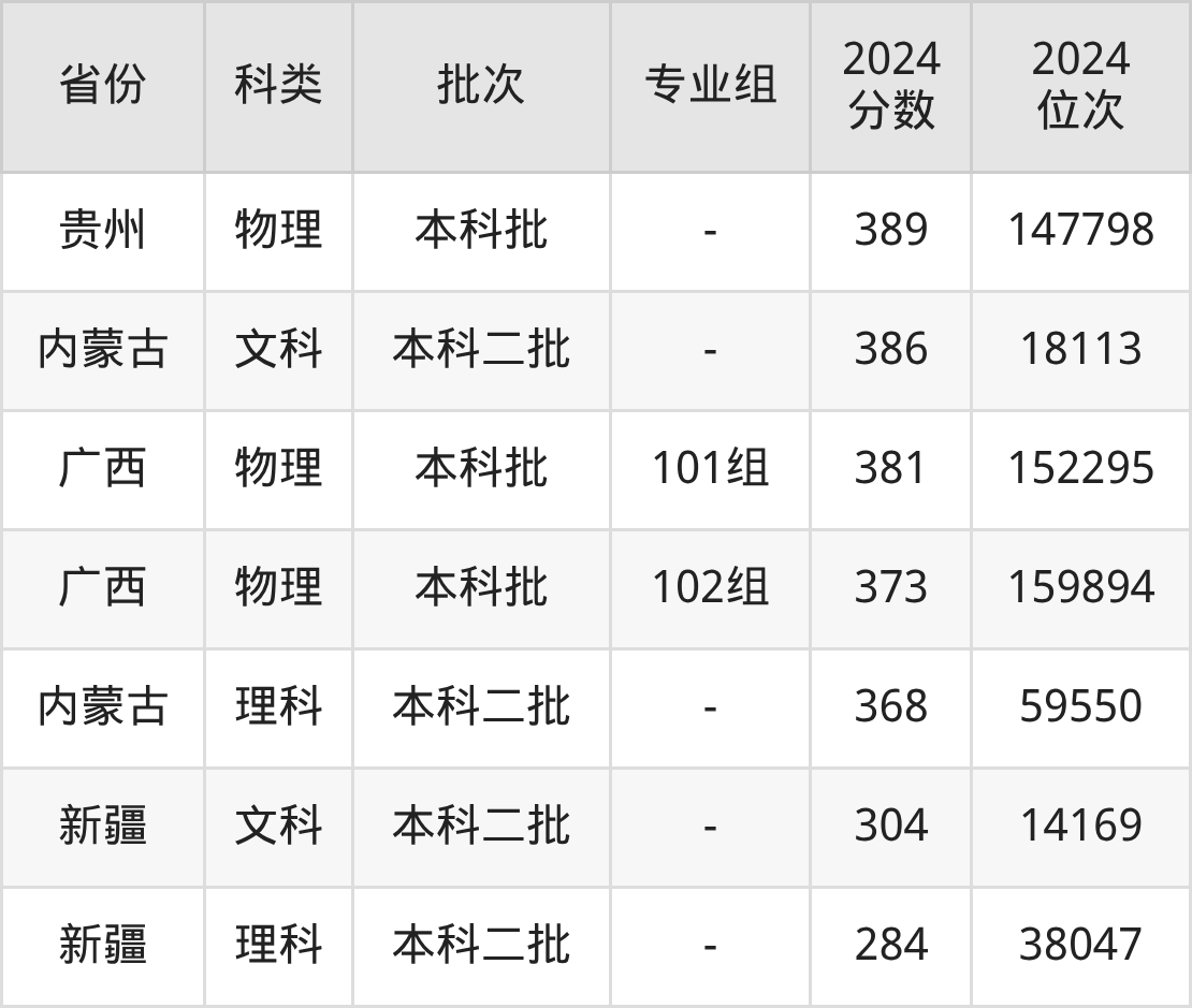 物理类最低分为350分,最低分招生专业组为第08组,对应最低位次为196758名;历史类最低分为326分,最低分招生专业组为第07组,对应最低位次为105642名。各专业组分数及位次详情见下表: