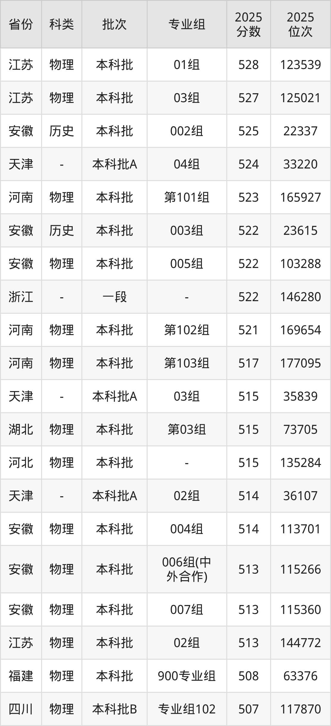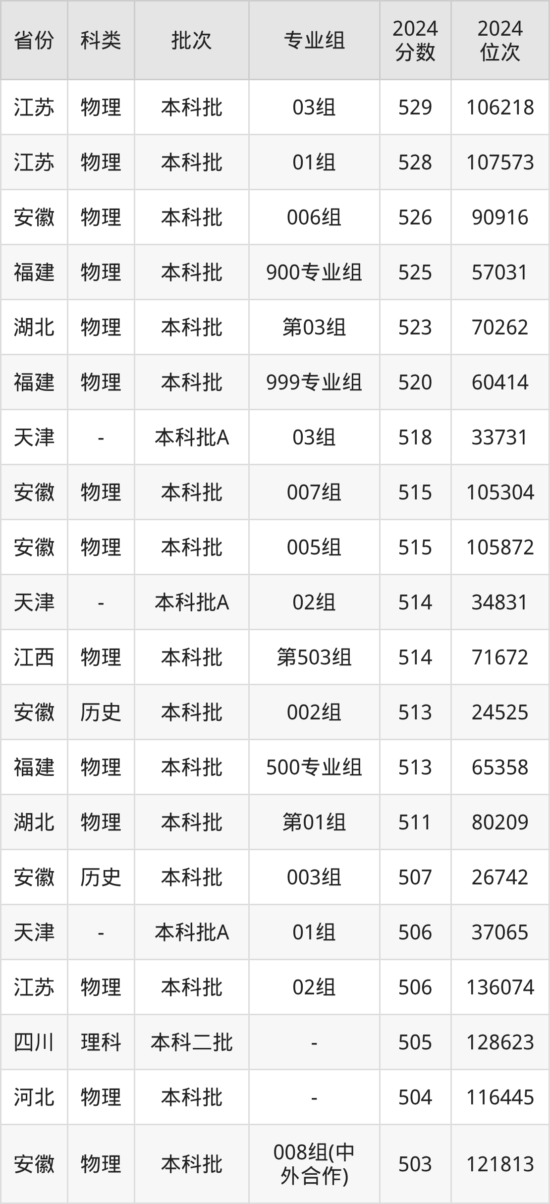 安徽科技工程大学在本科招生,现以学校2025年在安徽物理类(本科)的录取情况为例,006组(中外合作)最低分为513分。关于院校更多省市本科批分数线,详见下文。