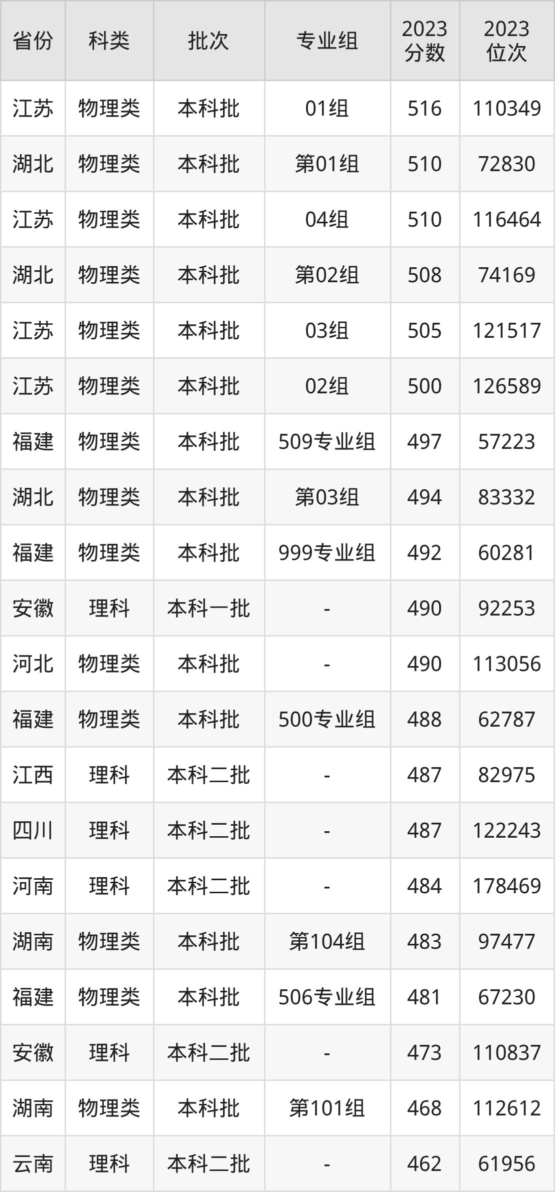 从学校本科专业在各省的录取线来看,江苏、湖北等地分数最好要超过本科线70分左右。下面是安徽科技工程大学2023年物理类/理科录取分数线一览表: