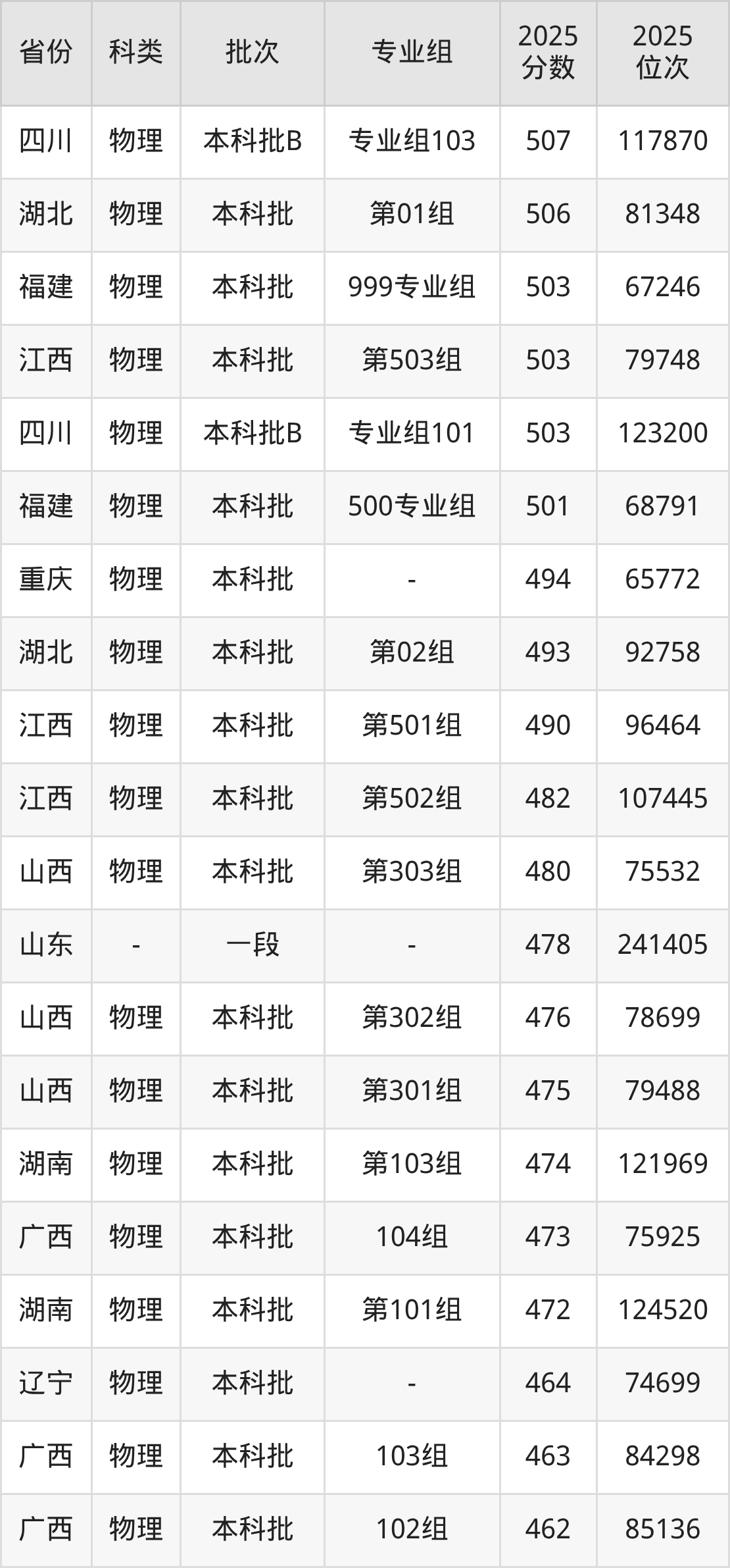 物理类008组(中外合作):最低投档线为503分、位次是121813名