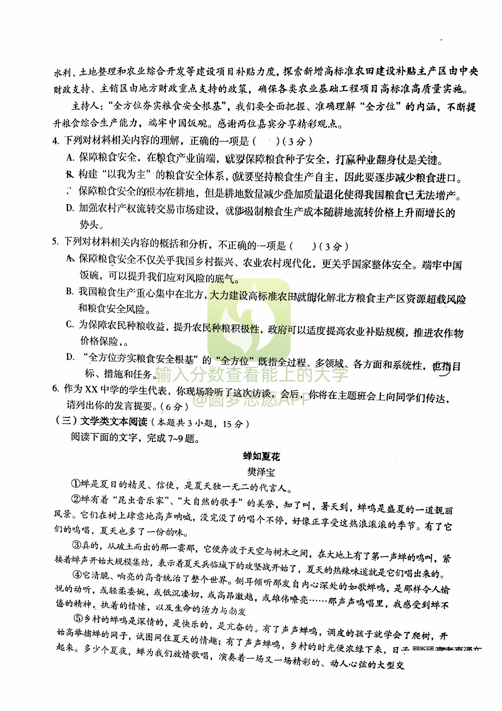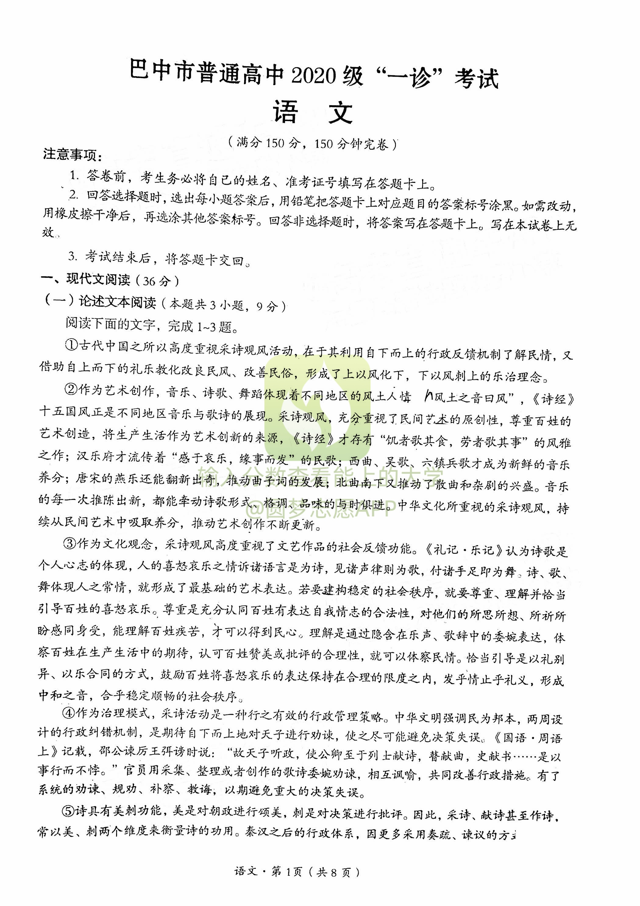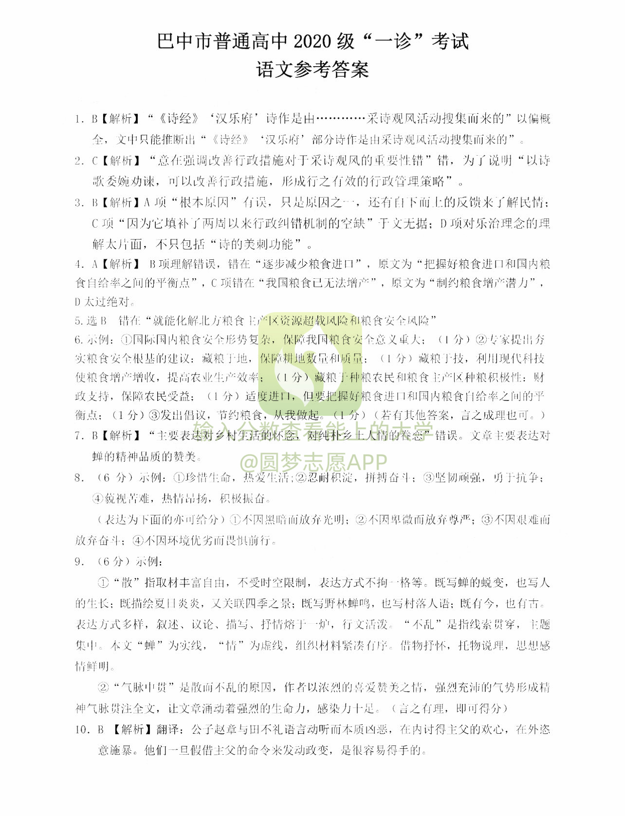 以下为2023巴中高三第一次诊断性考试各科试题及参考答案汇总: