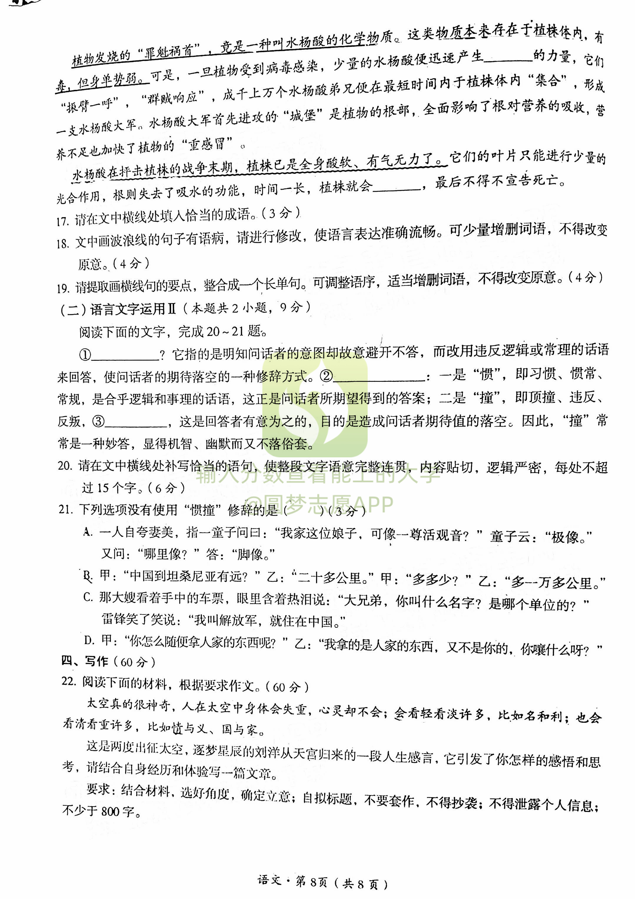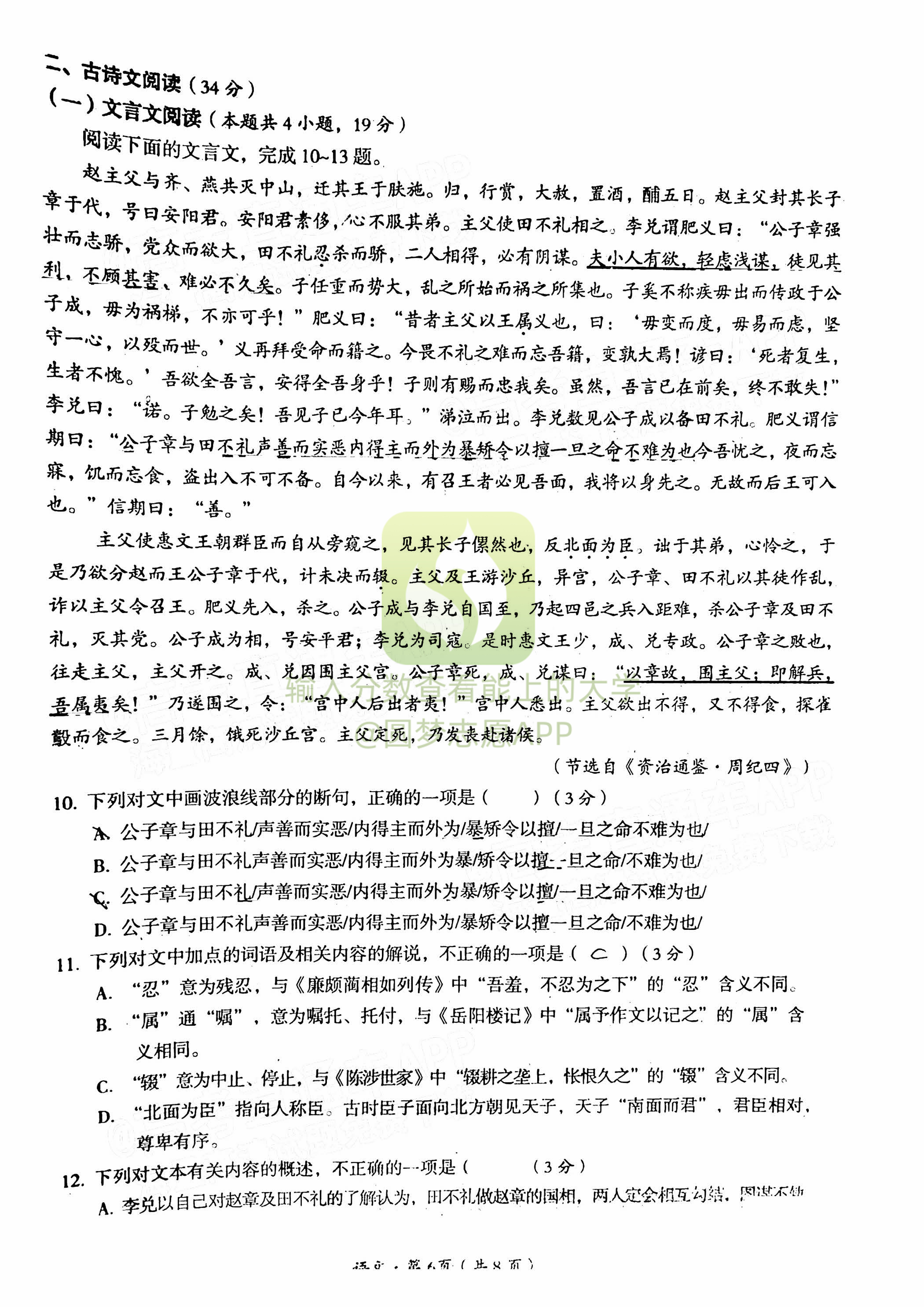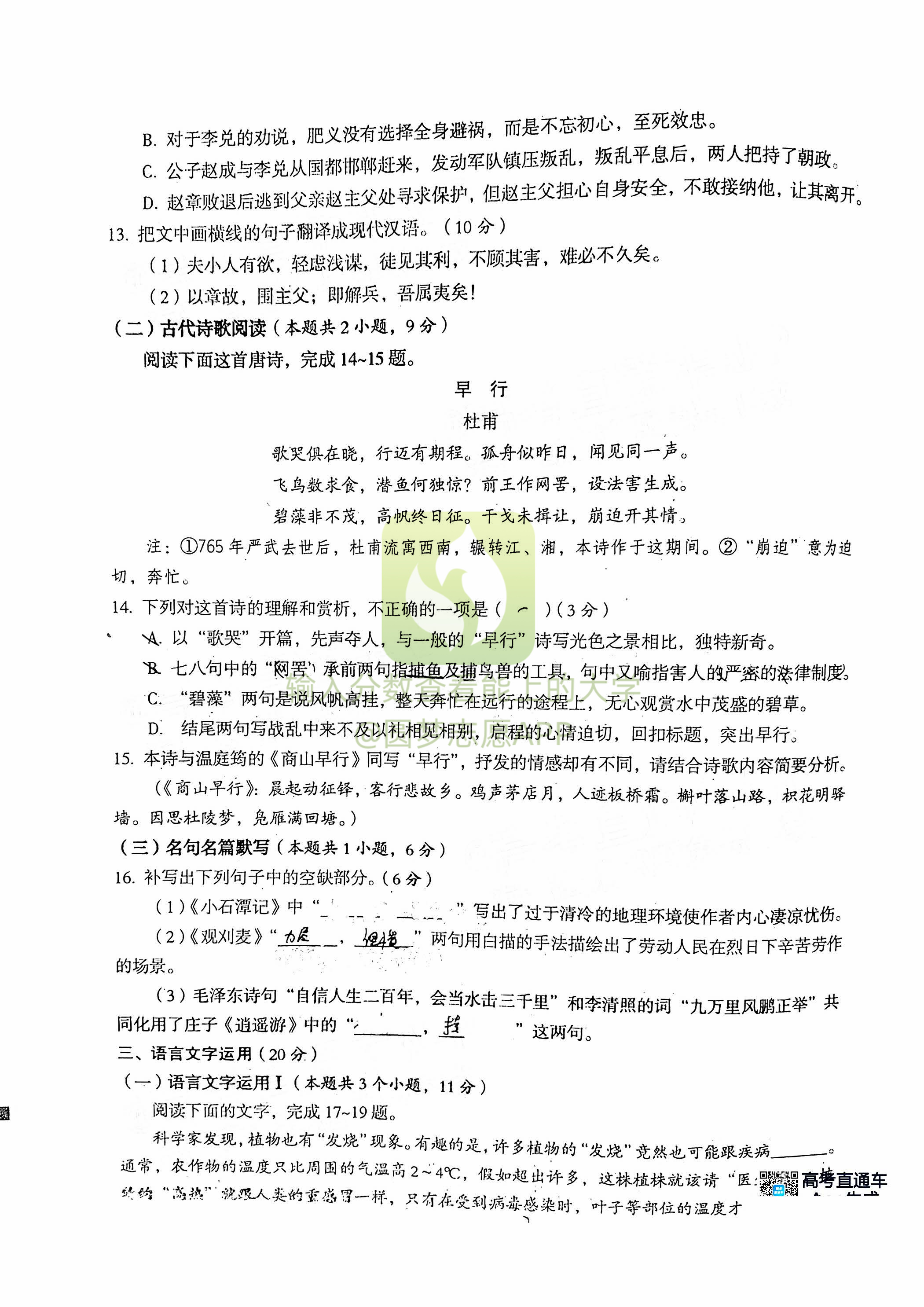 以下为2023巴中高三第一次诊断性考试各科试题及参考答案汇总: