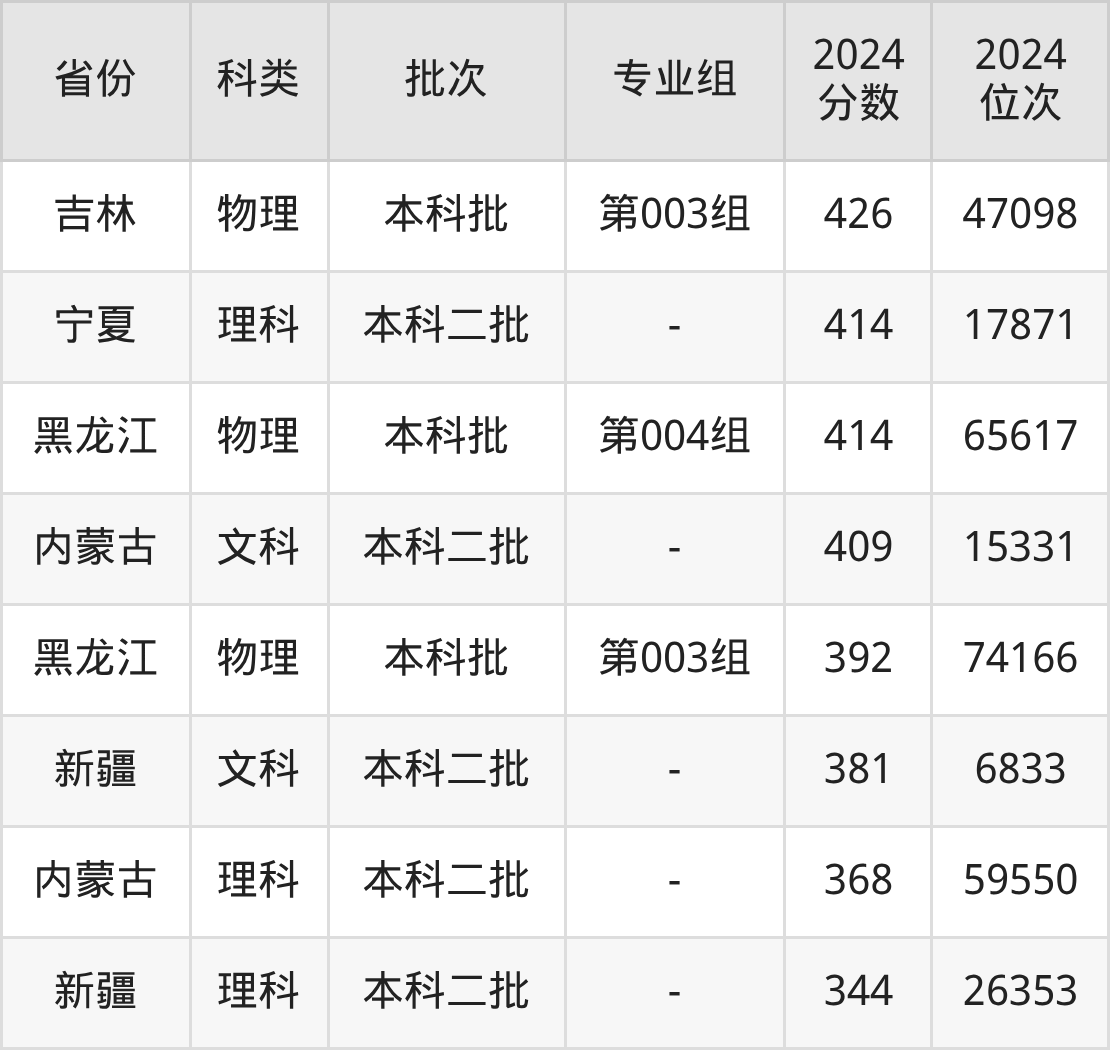物理类600专业组:最低分为505分、位次是70941名