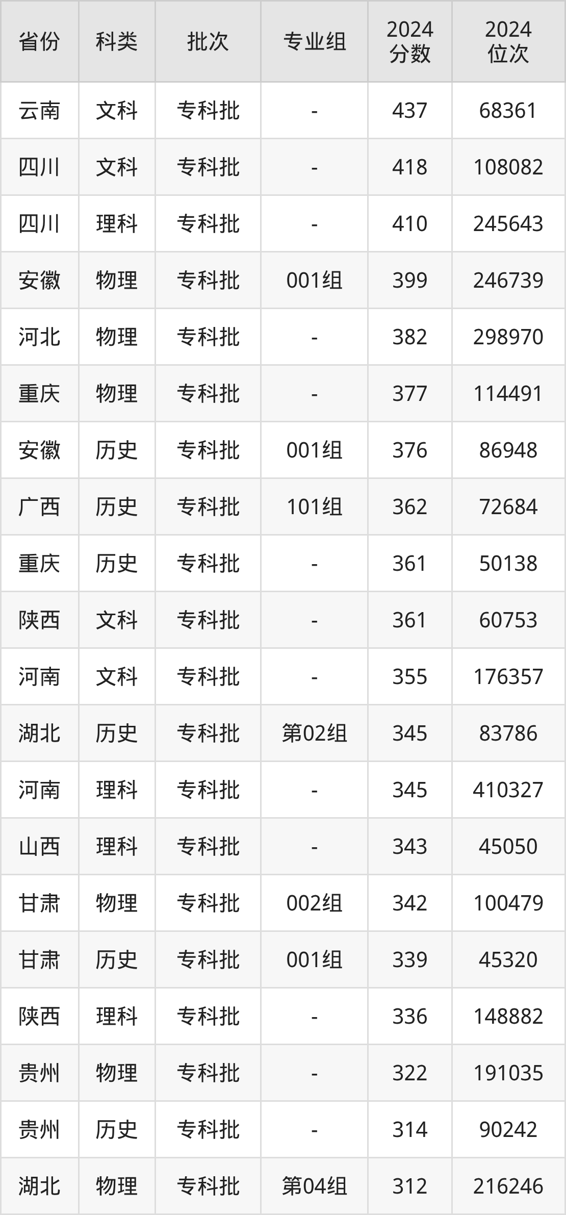 | 历史 | 专科批 | 391 | 128342 |