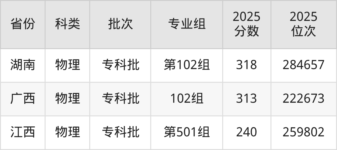 | 科类 | 批次 | 2025 分数 | 2025 位次 |