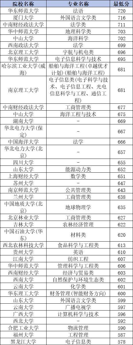 参考2024年数据,海南高校专项计划大学录取分数线为:578分-720分,具体分科类录取情况如下: